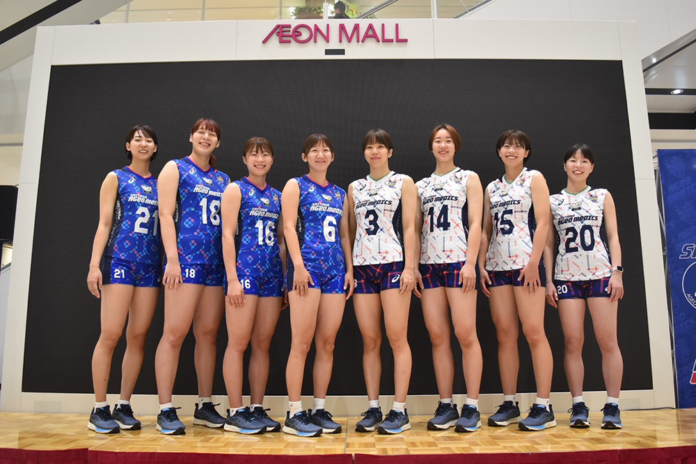 埼玉上尾メディックスから仁井田桃子選手、目黒安希選手、椎名真子選手、堀迫雅選手、佐々木海空選手、権田寛奈選手、岳野ひかる選手、栗栖明歩選手が新ユニフォームを着用して登壇しました。