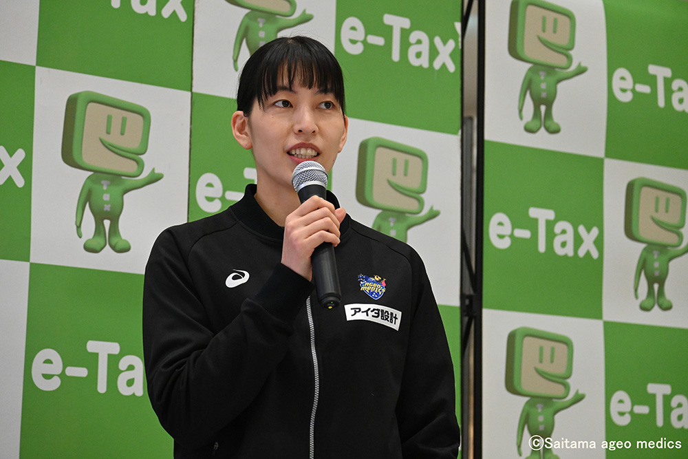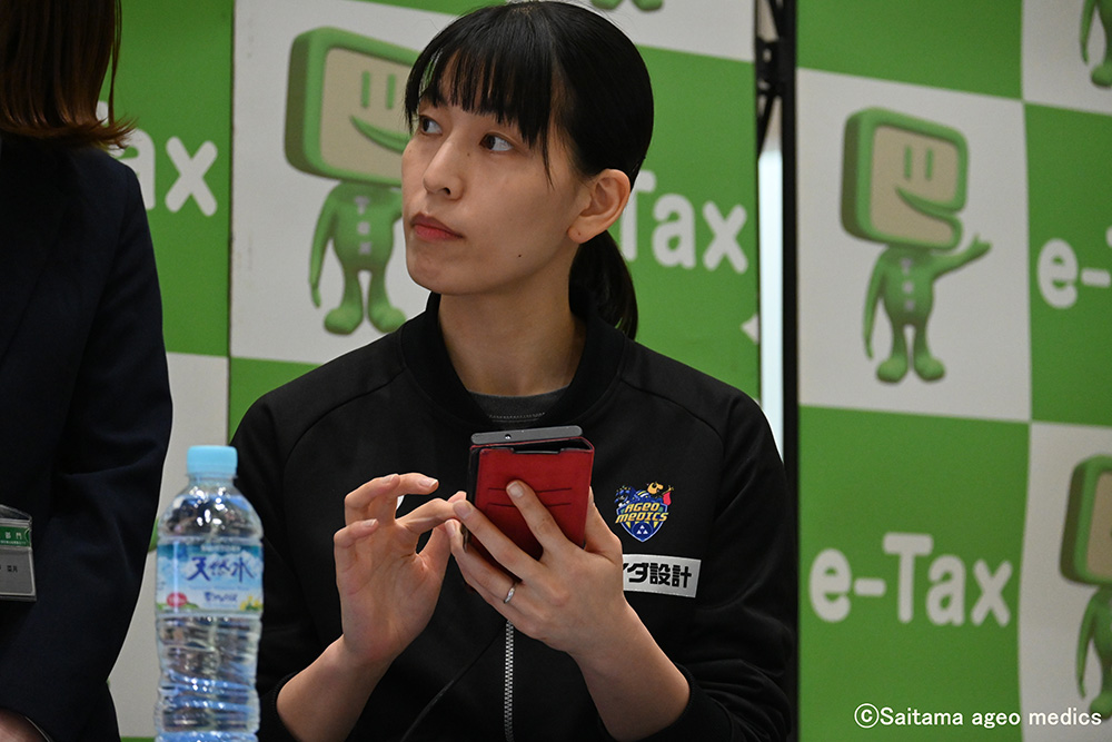 岩崎選手は、e-Taxを使ったスマホ申告を実際に体験し、黒後選手はチャットボットの利用方法を紹介させていただきました。