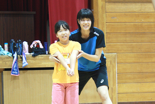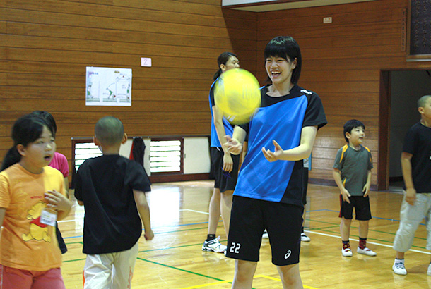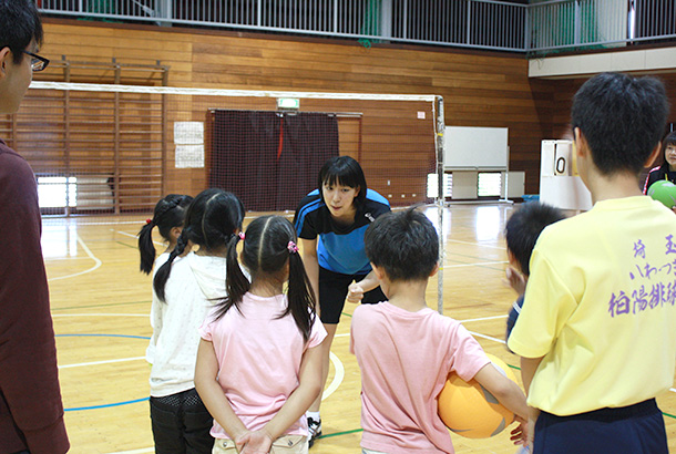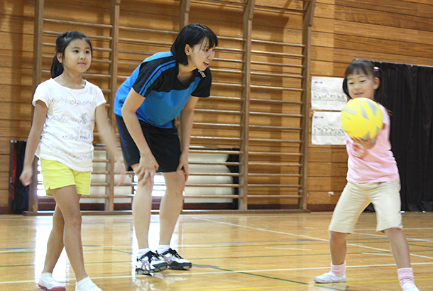 今回のバレーボール教室では、バレーボールをほとんどしたことのない小学生達とバレーボールに触れて、楽しむことを主体にして行いました。
