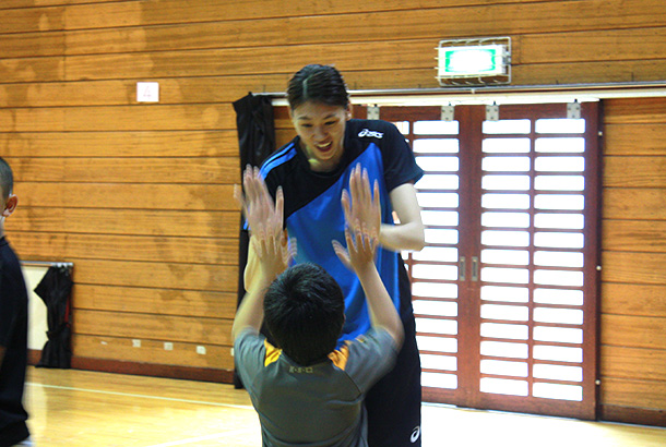 パスの仕方や、簡単な手の組み方、一つのボールをつないで遊んだりと参加したメディックス選手も一緒になって楽しむことが出来た教室となりました。