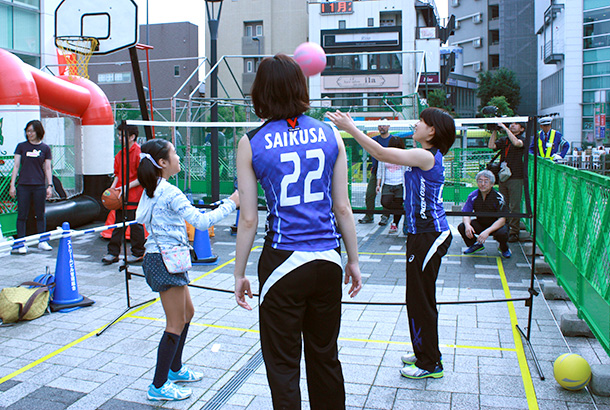 当日は浦和駅前の市民広場の体験コーナーにてミニバレーボールと、キャンペーンブースにてグッズ販売ならびにチームPRをさせて頂きました。