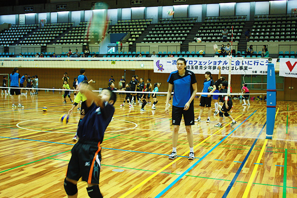 6月27日、上尾運動公園体育館にて「~青少年夢のかけはし事業~「バレーボール選手になろう」バレーボール教室が開催されました。
