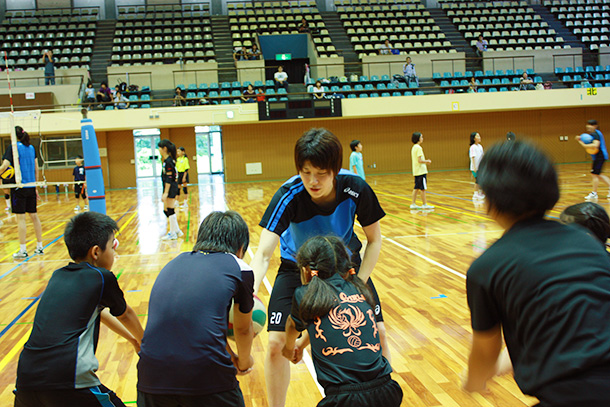 閉講式では山岸選手、竹田選手、近藤選手からは「テレビで見た選手たちに憧れて始めたバレーボールですが、これまで苦しいことも経験しながら、仲間や周りの人たちに支えられながら自分も選手という夢を叶えることが出来ました。