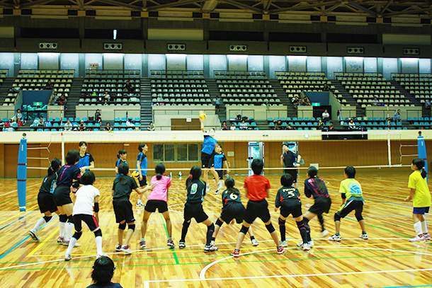 教室では初心者、経験者のグループに分かれ、レシーブ、パス、スパイクの技術練習から最後はゲームまで行われました。