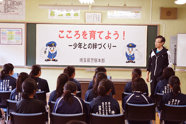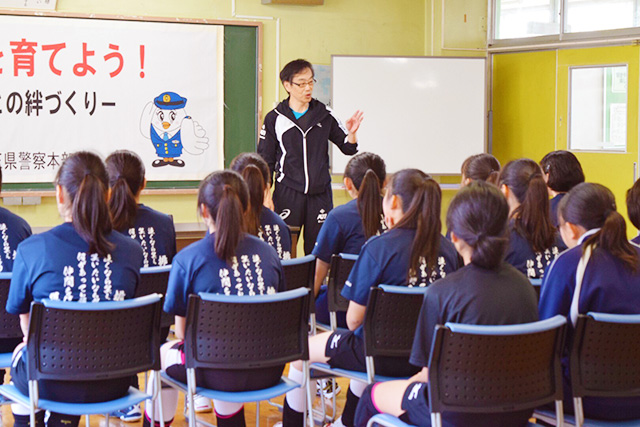 スクールサポーターによる非行防止教室のあと、吉田監督より「チームワークの大切さ」の講話では、ペアを作り、本日の教室で“お互いに約束事を守ろう”と自分自身と友人との約束をして1日を過ごしました。