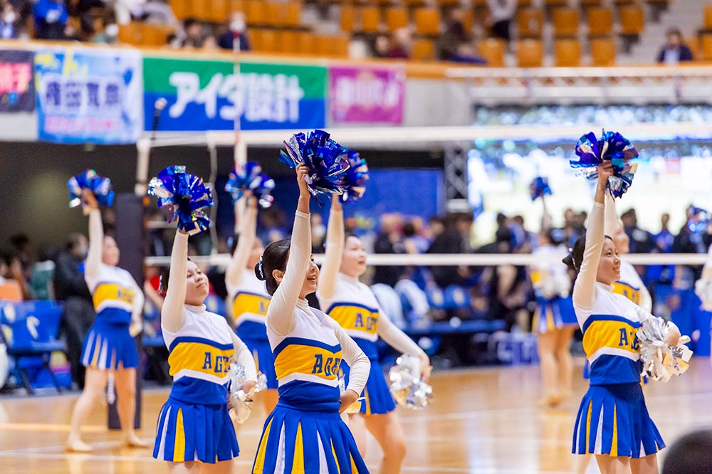 14日の試合前やセット間は上尾高校のチアリーディング部が会場を盛り上げてくれました!