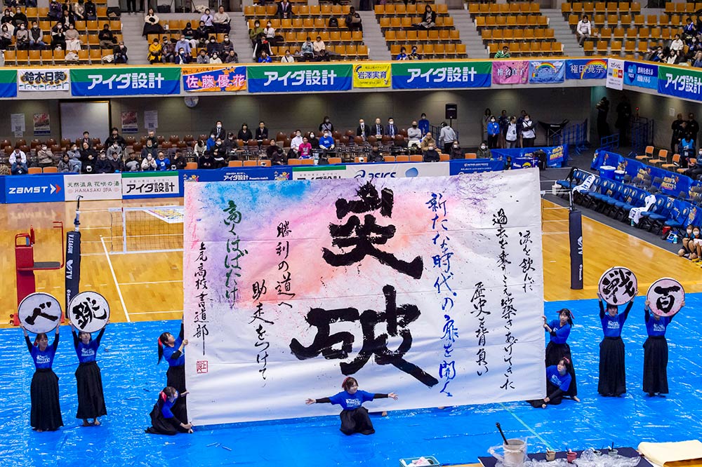 14日のセット間は上尾高校書道部がスローガンの「突破」を披露!