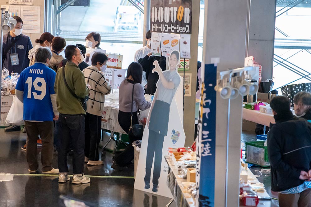 昨シーズンのホームゲーム開催や、夏合宿などでお世話になっている陸前高田市のブースを出店