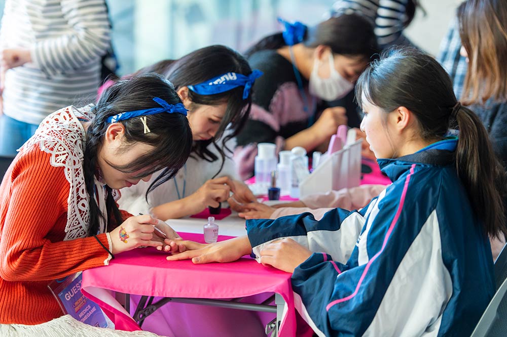 三幸学園ビューティー校ブースではネイルやヘアアレンジの体験を行いました