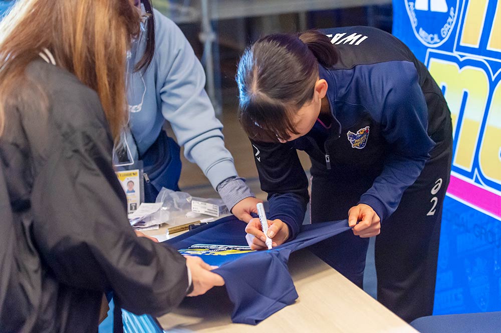 会記念グッズをご購入いただいた方を対象に、14日の試合終了後にサイン会を実施しました。