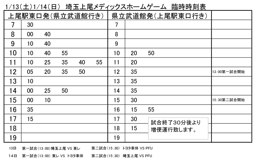 試合開始15:30 埼玉上尾メディックス VS PFUブルーキャッツ |