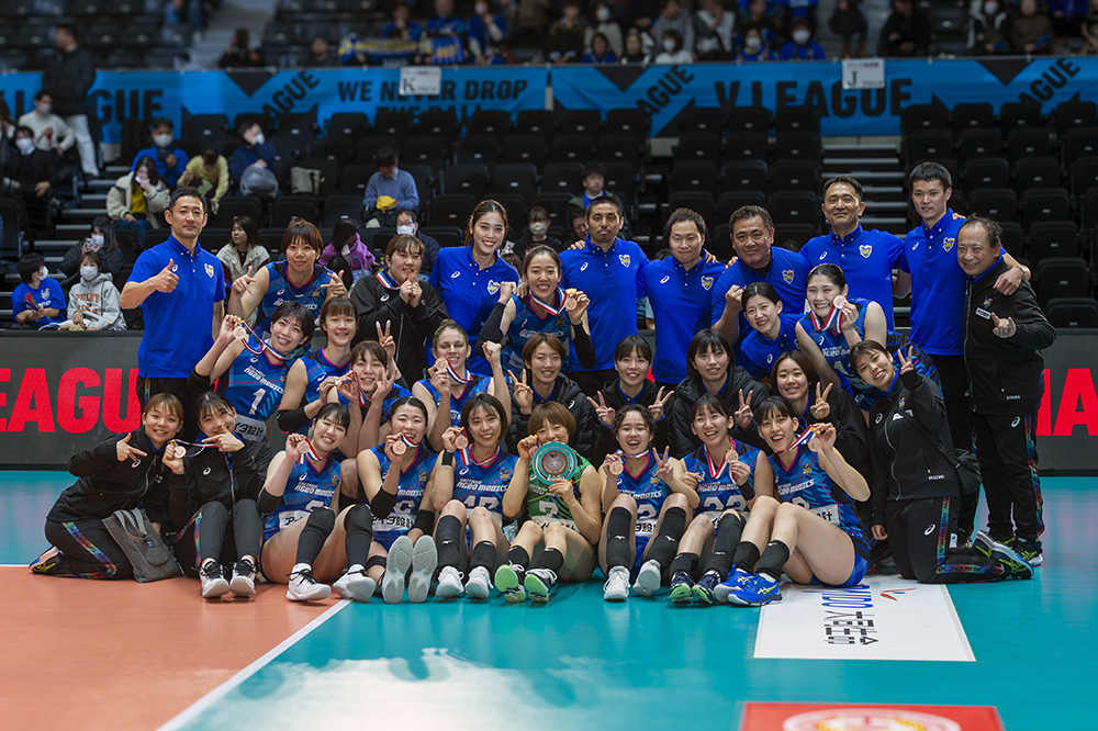 埼玉上尾メディックスは、V・レギュラーラウンドを15勝7敗で4位通過。悲願の優勝を目指して2年連続となるV・ファイナルステージへ臨みました。クォーターファイナルでは、デンソーエアリービーズとの戦いを勝ち上がり、セミファイナルではレギュラーラウンド無敗のJTマーヴェラスに挑むも敗れ、ファイナルへ進出することはできませんでした。そしてトヨタ車体クインシーズとの3位決定戦に臨み、2019/20シーズン以来の第3位に輝きました。目標であった優勝へは届きませんでしたが、3位決定戦では今シーズン、チームとしてやってきたことをすべて出し切ることができました。