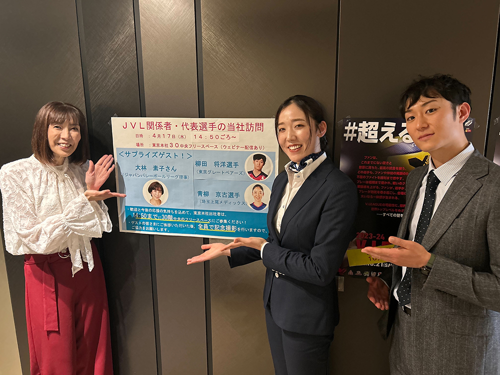 SV.LEAGUEタイトルパートナー発表の際、同じくゲストのJVL理事の大林素子さんと東京グレートベアーズの柳田将洋選手と登壇し、大同生命タイトルパートナー決定についてのコメントをさせていただきました。
