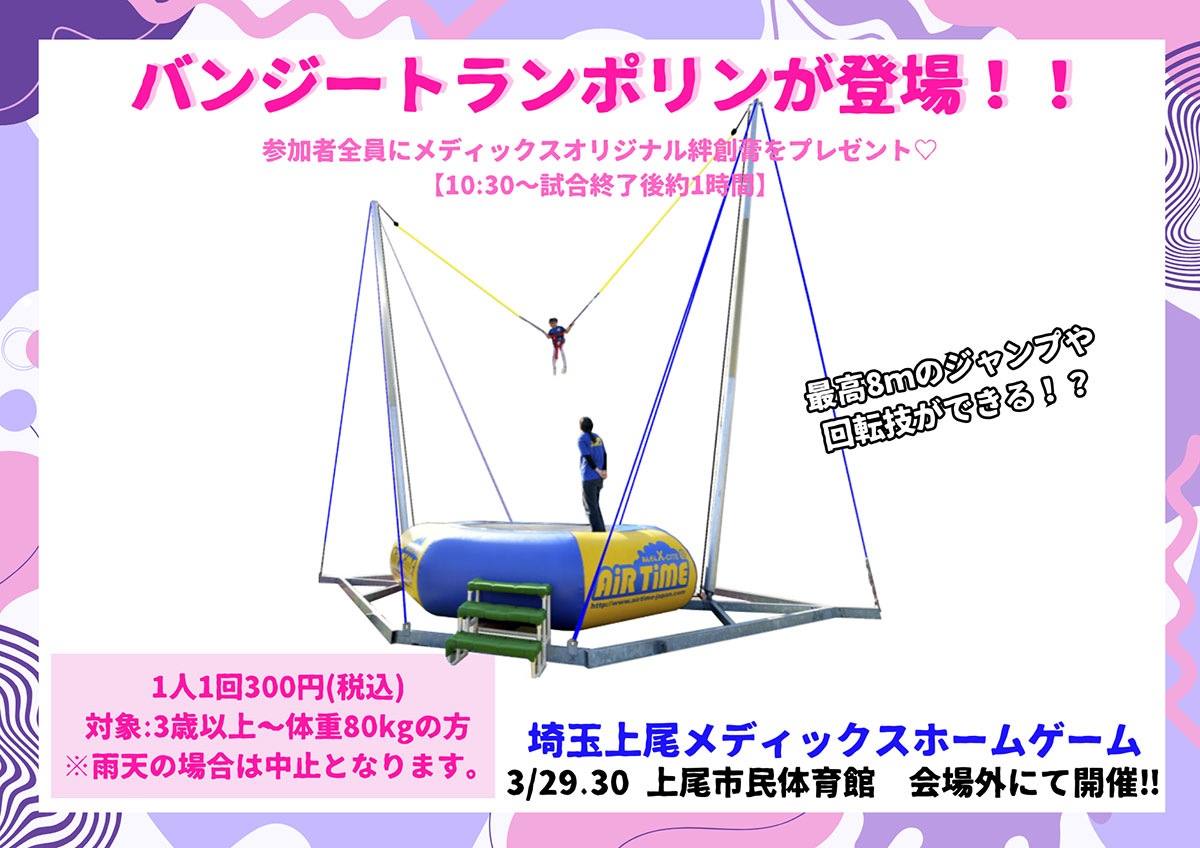 3月29、30日は子どもから大人まで楽しめるバンジートランポリンが登場します!!