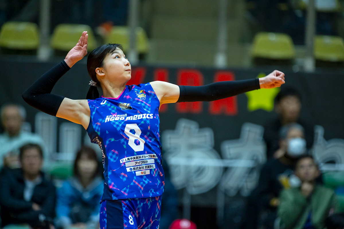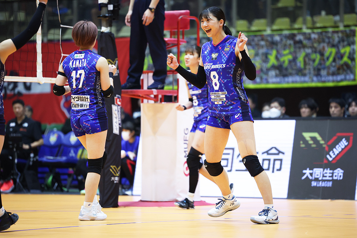 山地選手は昨シーズンのV Cupではメディックスとしてはじめて公式戦に出場し、高さを活かしたアタックで素晴らしい活躍を見せてくれました。今シーズンも山地選手への応援をよろしくお願いいたします。