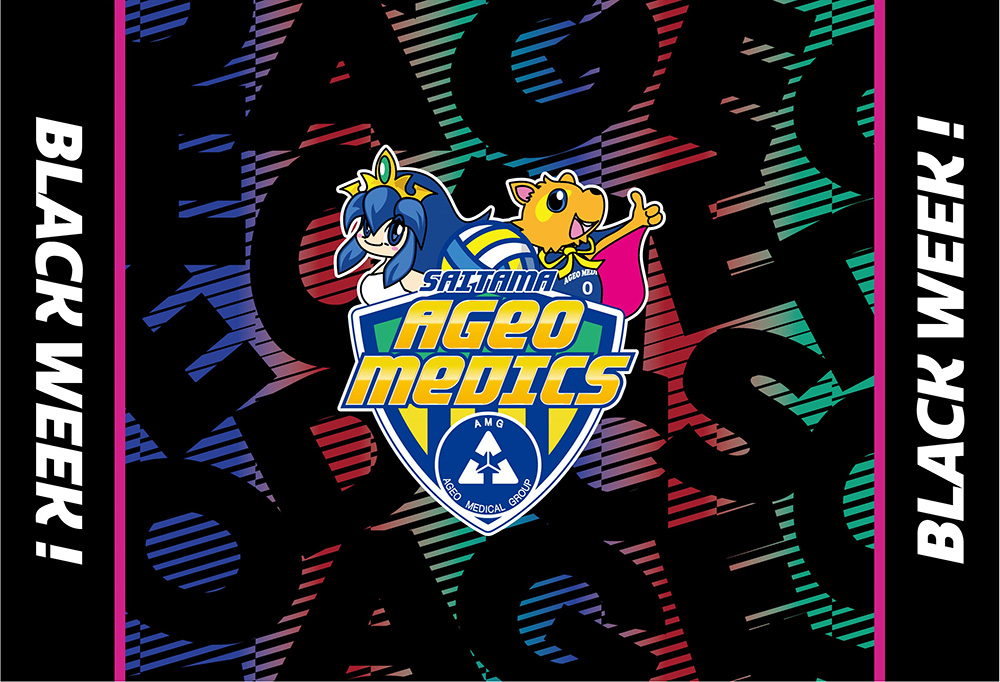 2024年12月28日(土)、29日(日)と2025年1月4日(土)、5日(日)のホームゲームでは、 サードユニフォーム着用試合の年末年始企画として、 サードユニフォームの色にちなんだ 「BLACK WEEK !~メディックスの特別な4日間~」 を開催いたします。 サードユニフォーム着用はこの4試合だけ!メディックスを存分にお楽しみいただけるイベントとHG企画をご用意いたしました。