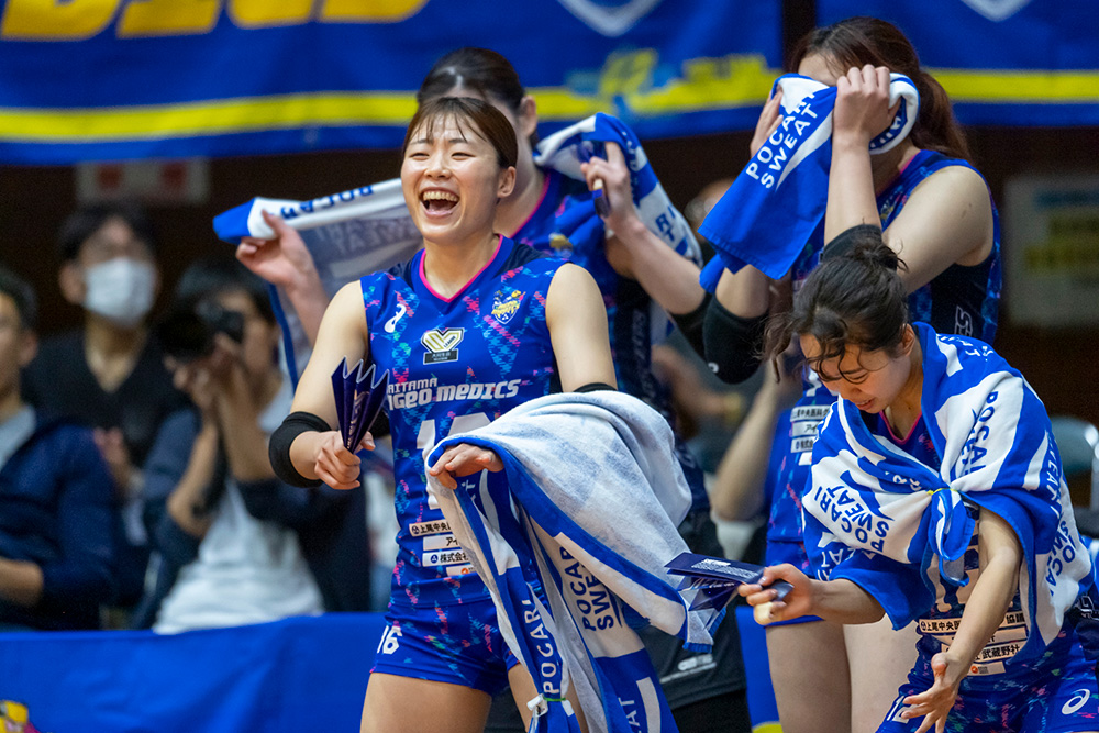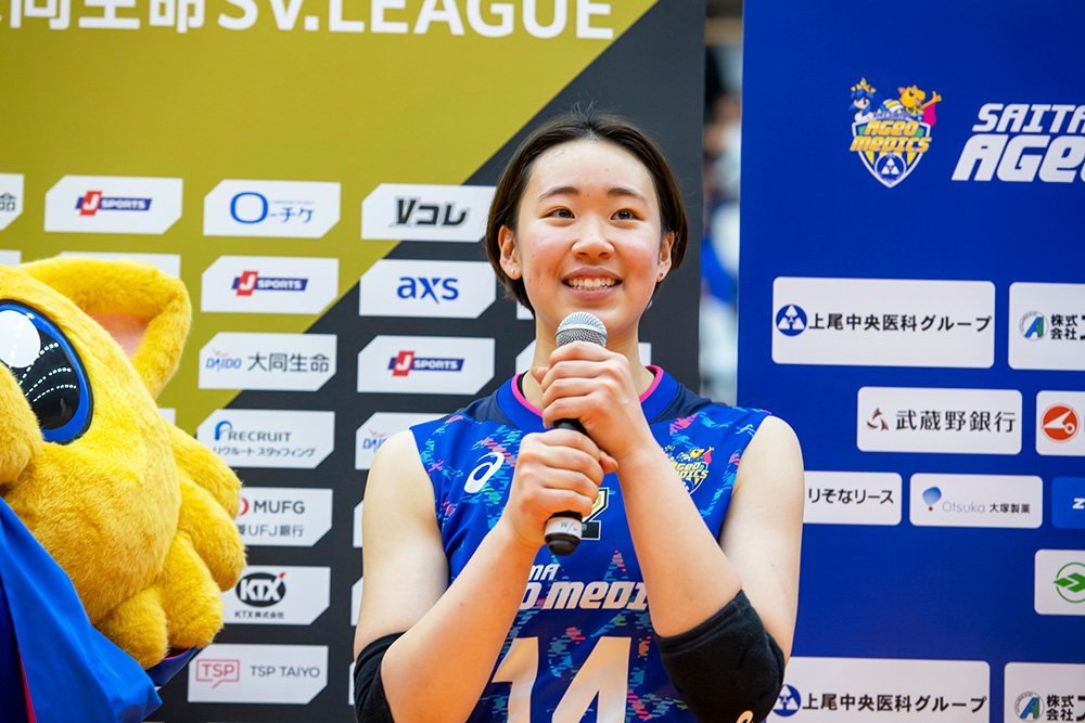 私は埼玉上尾メディックスに入団が決まった時、周りに笑顔を与えられる選手になりたくて、私自身が心からバレーボールを楽しみ明るく笑顔でプレーすることを決意しました。チームメイトやメディックスファンの皆さまのおかげで決意したことを達成できたと思っています!本当に温かい応援ありがとうございました。
