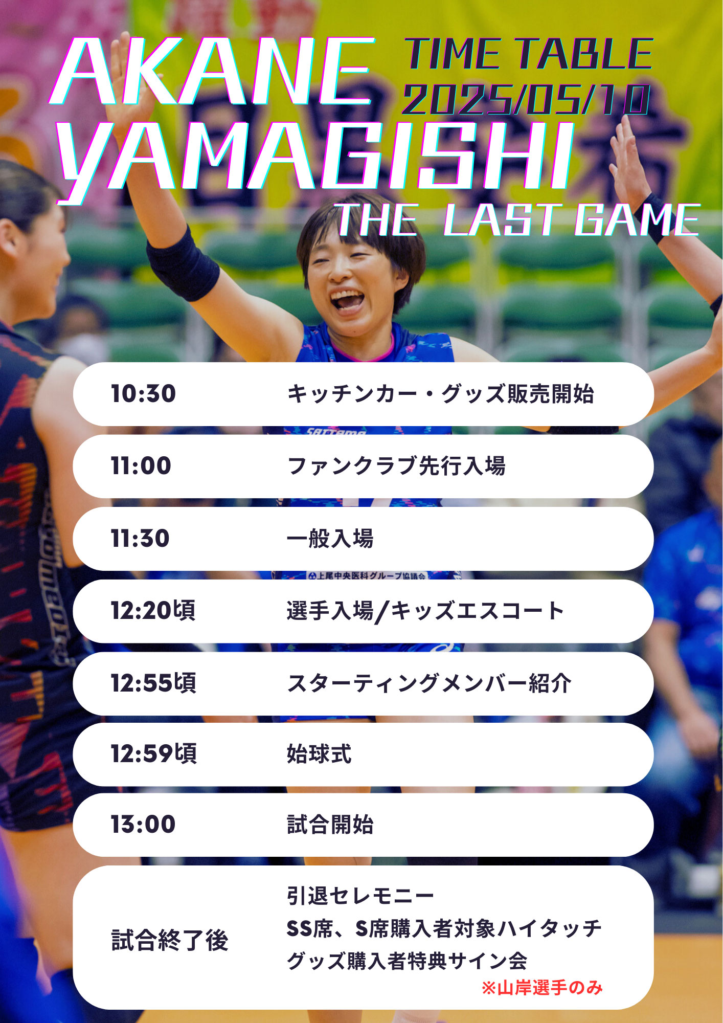 4月5日、6日のホームゲームにて発表がありました通り、5月10日(土)に埼玉県東松山市・東松山市民体育館にて、山岸あかね選手の引退試合の開催が決定いたしました!