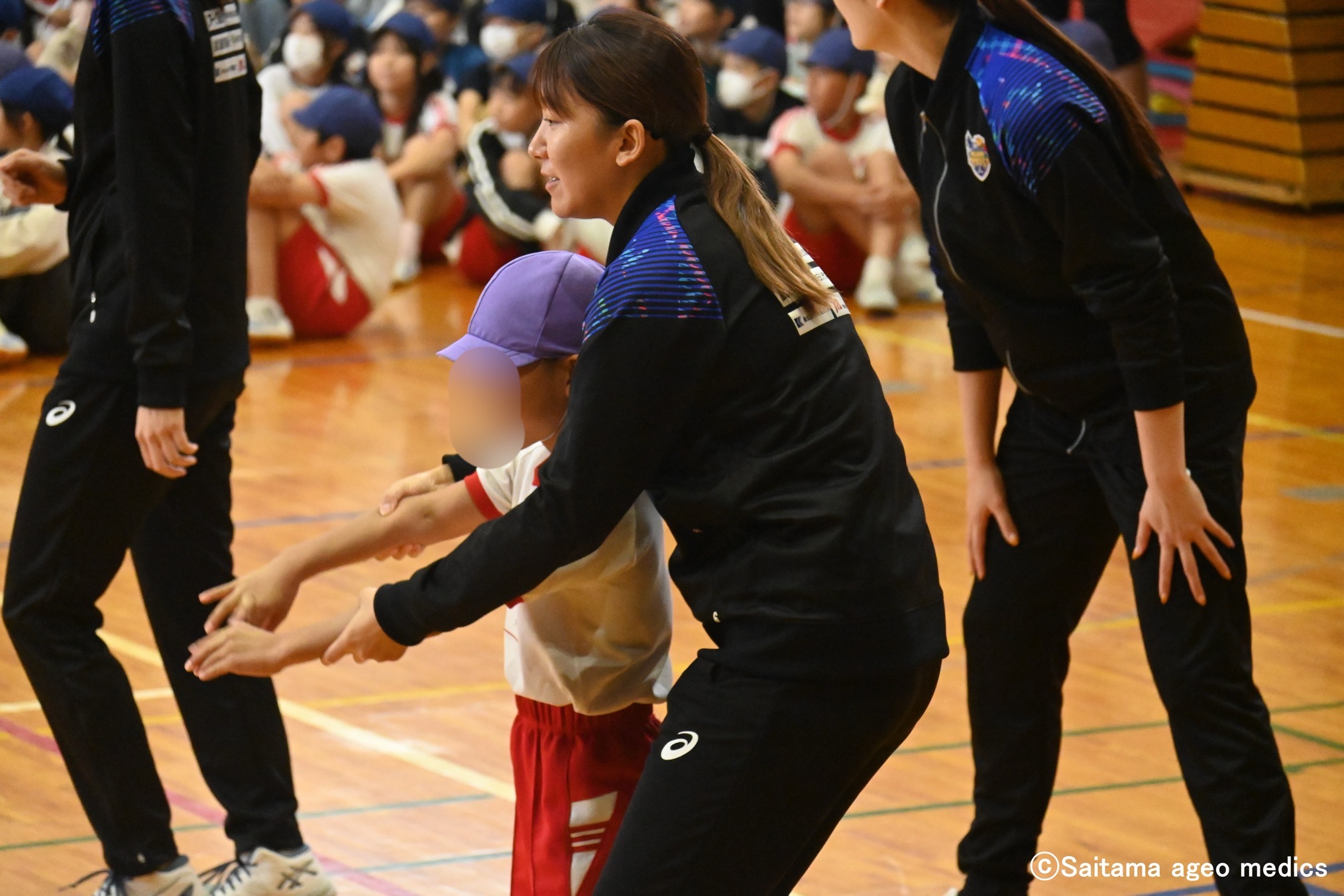 体験会では、岩崎こよみ選手が「やってみたい人―!」と問いかけると、