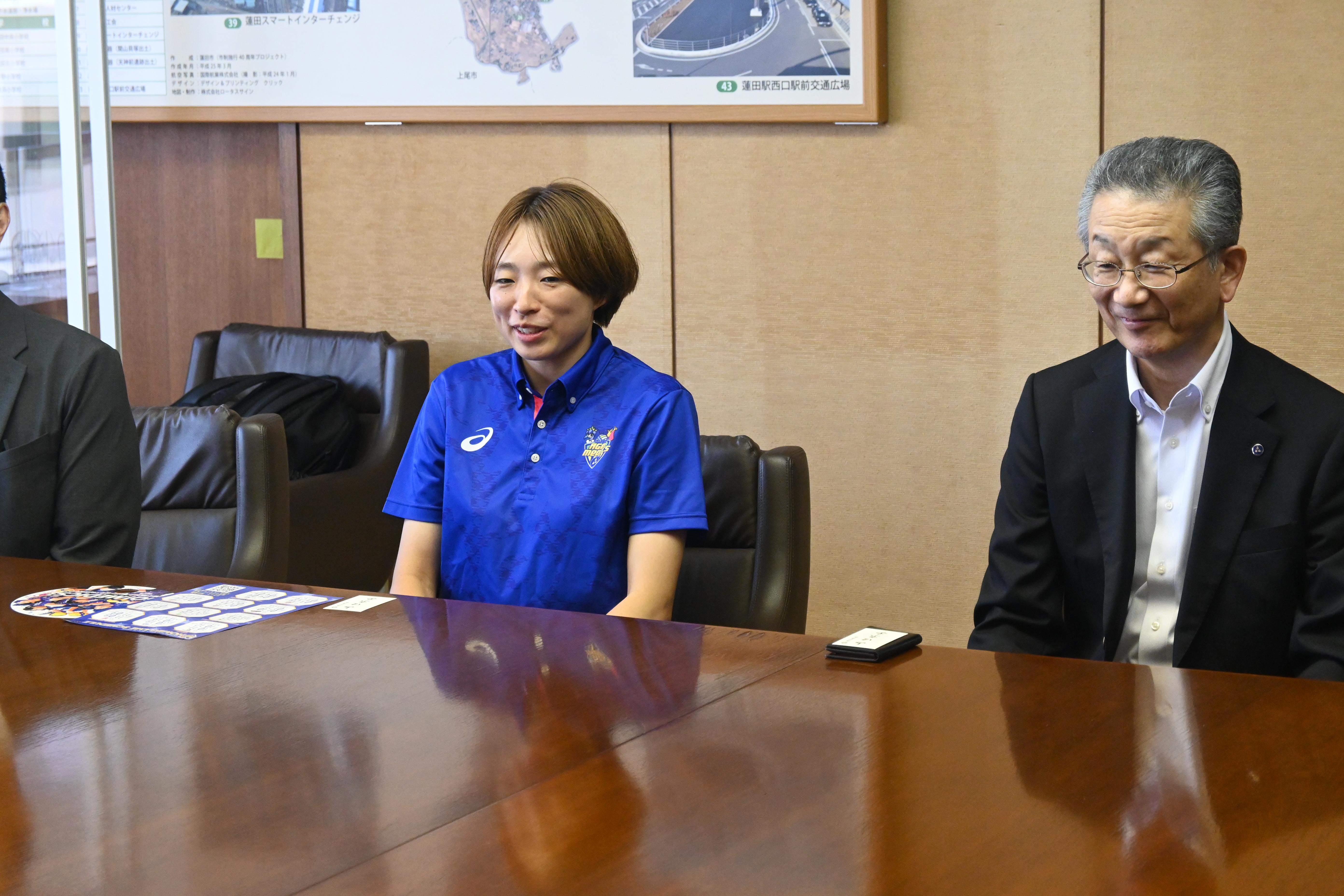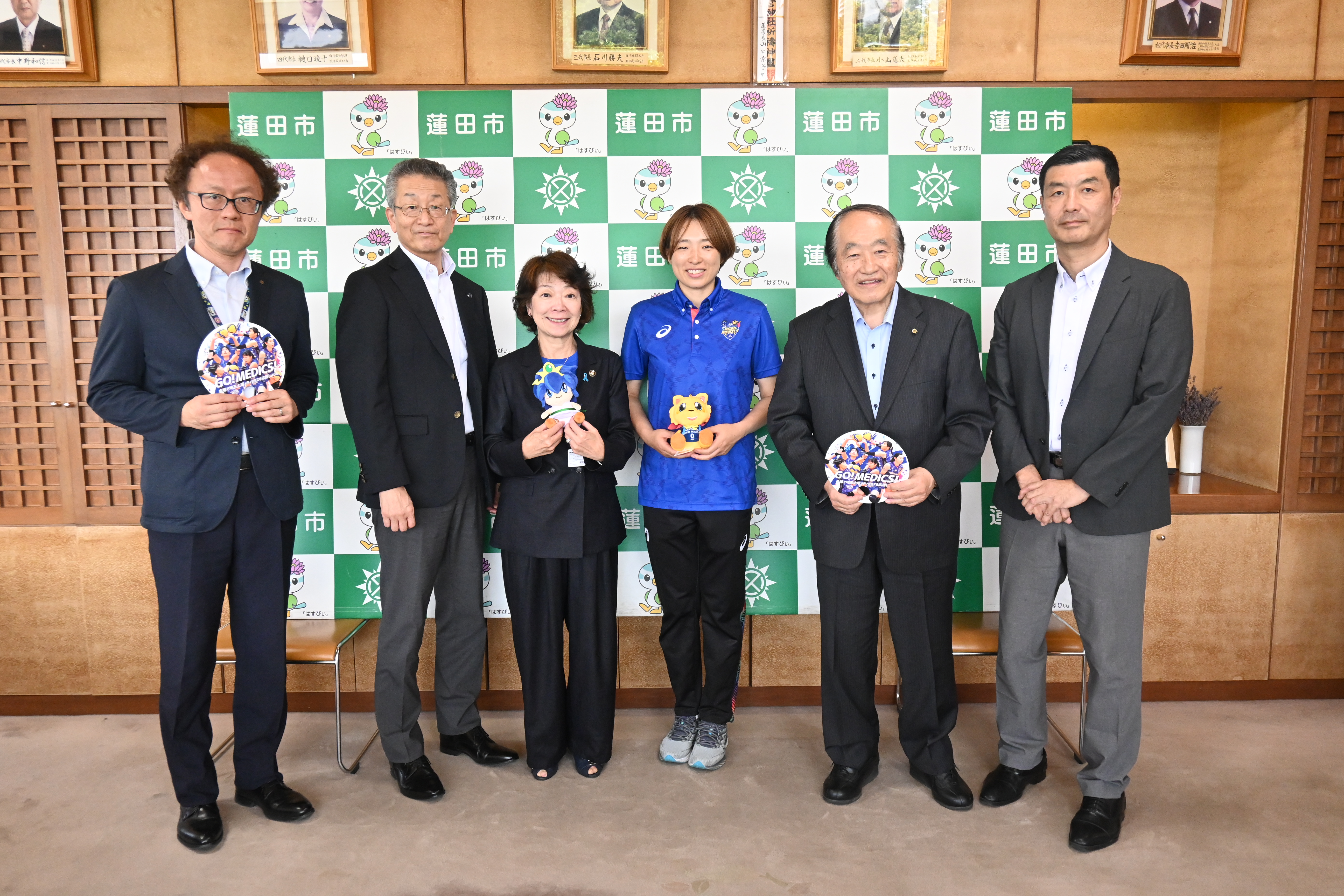 8月20日(水)、埼玉上尾メディックスから山﨑佳紀社長、佐藤嗣朗GM、山岸あかねアンバサダーが蓮田市役所を訪問し、