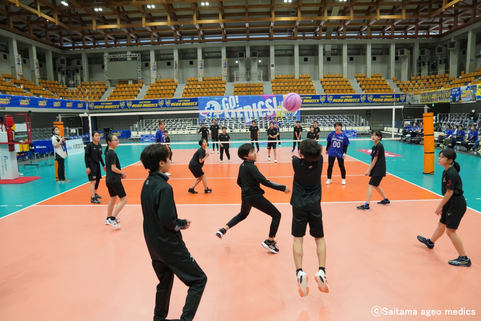 2026年3月14日(土)に行われた埼玉上尾メディックスVS東レアローズ滋賀戦後に埼玉県のプラチナキッズへ向けたバレーボール教室を行いました。
