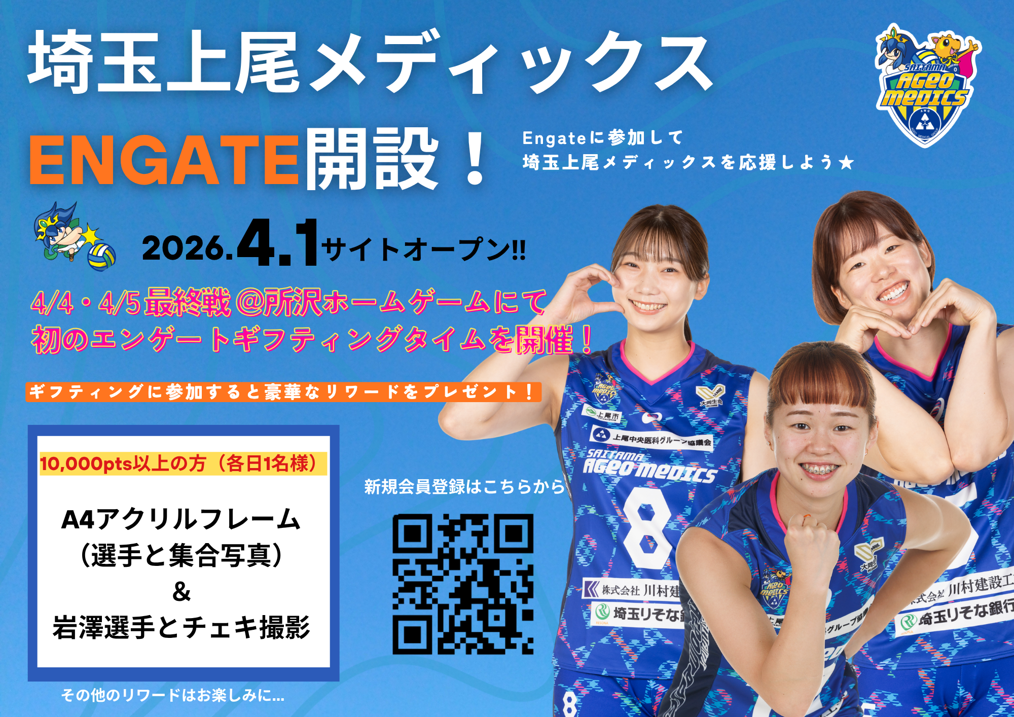 ぜひエンゲートを通して、埼玉上尾メディックスと選手への応援をよろしくお願いいたします!!