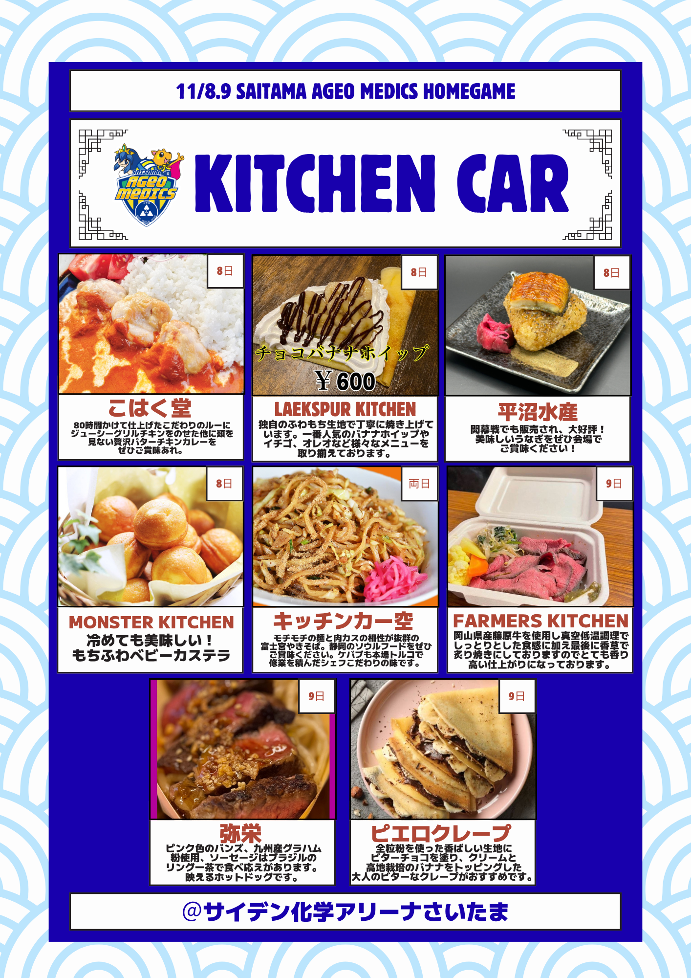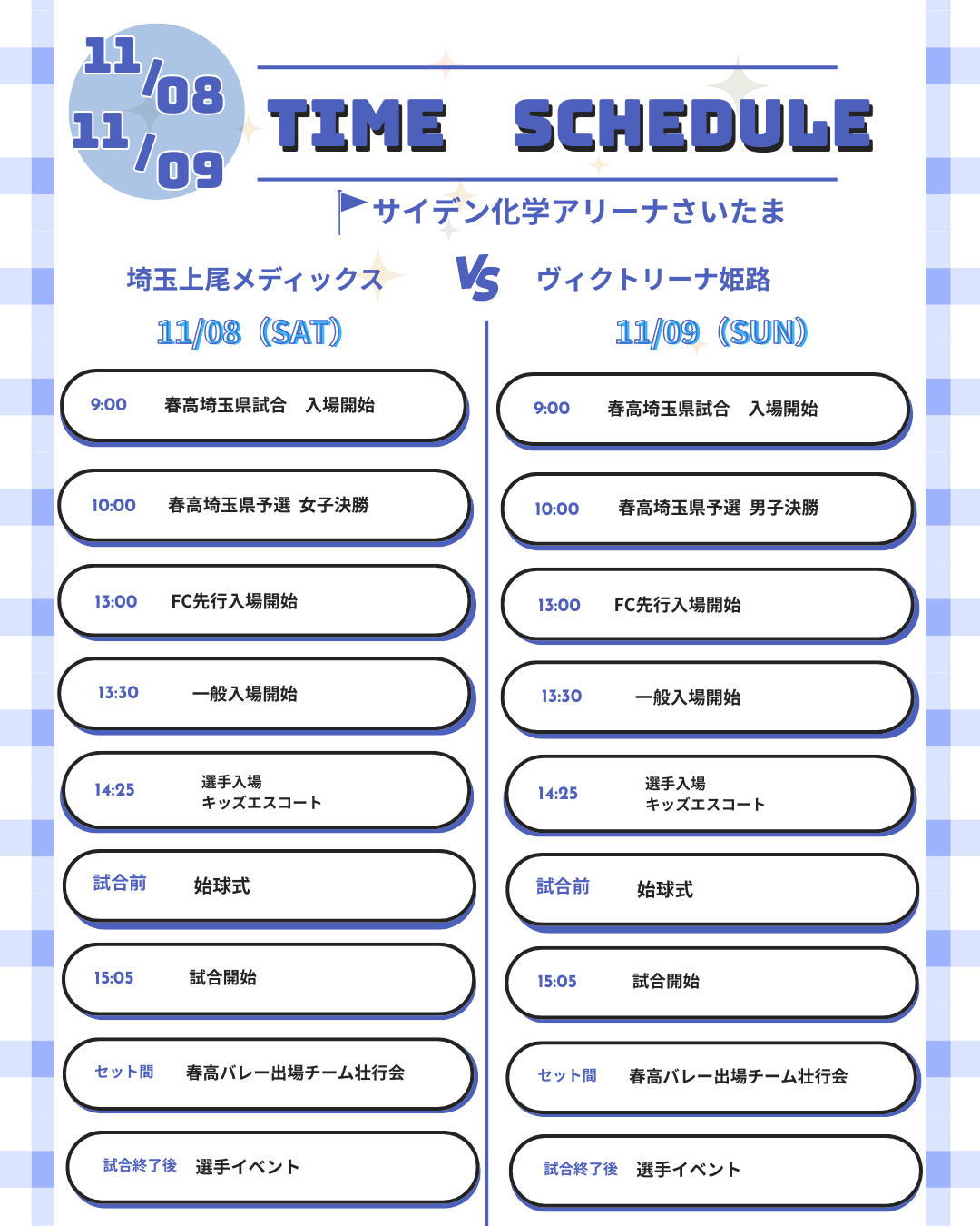 実施日時:2025年11月8日(土)・9日(日) 9:00〜試合終了後 約1時間まで