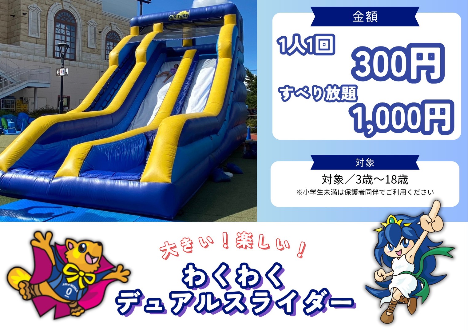 巨大ふわふわ遊具「デュアルスライダー」が登場します!!
