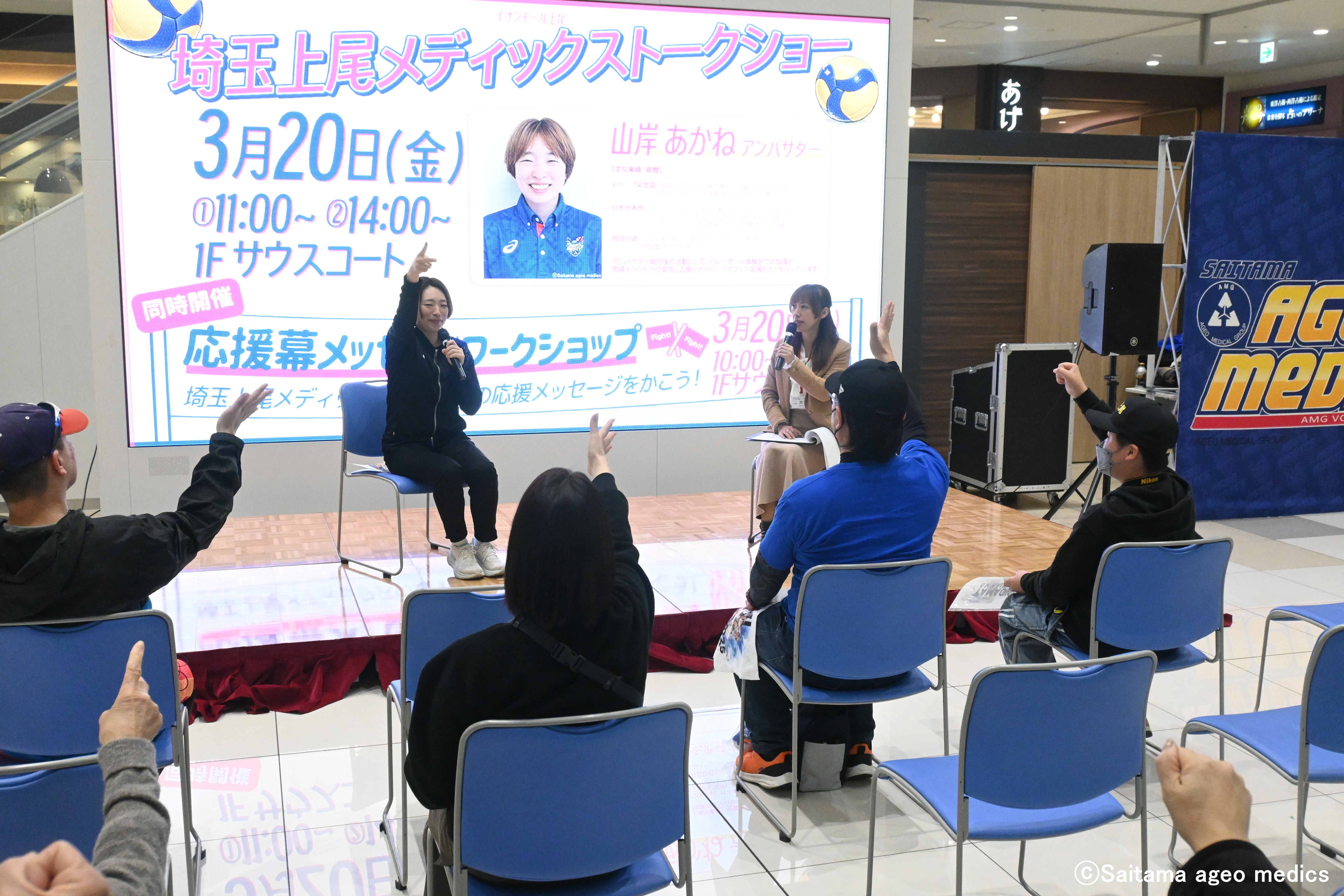 3月20日(金)にイオンモール上尾1階サウスコートにて「埼玉上尾メディックス トークショー」を開催し、山岸あかねアンバサダーが登壇いたしました。