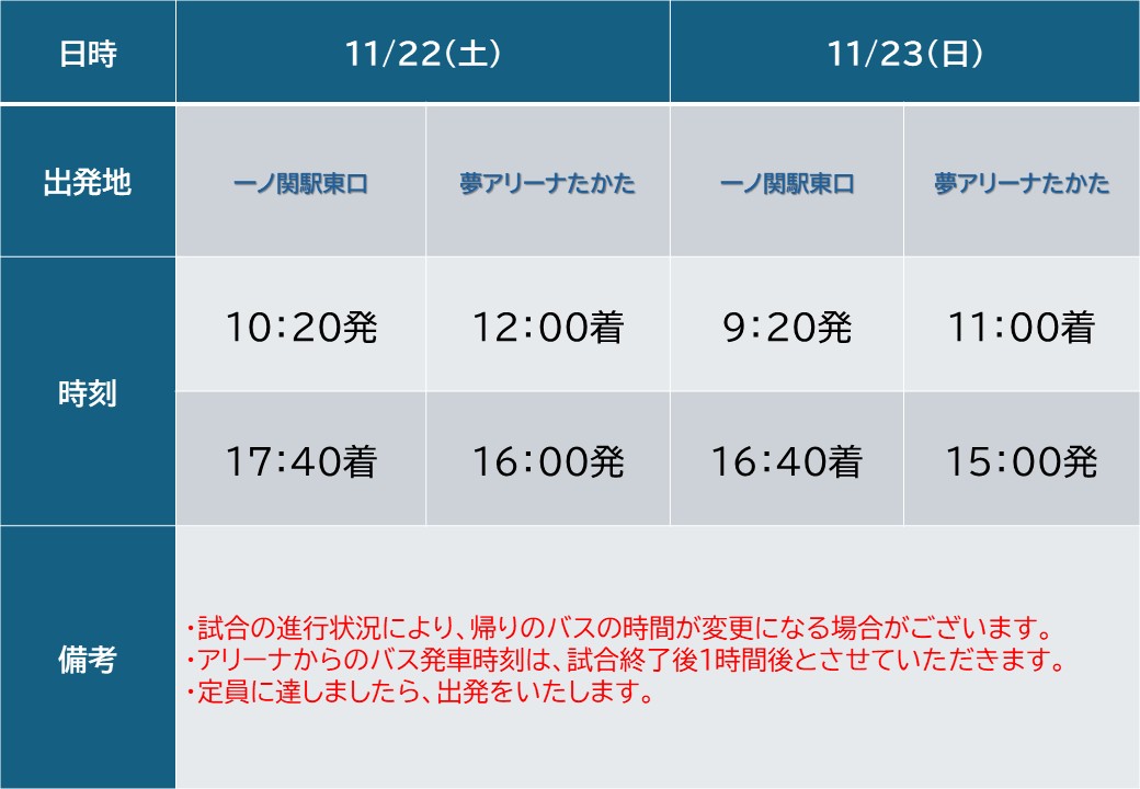 第7節埼玉上尾メディックスホームゲーム(大阪MV戦)にて、一ノ関駅から会場までの臨時バスを運行いたします。
