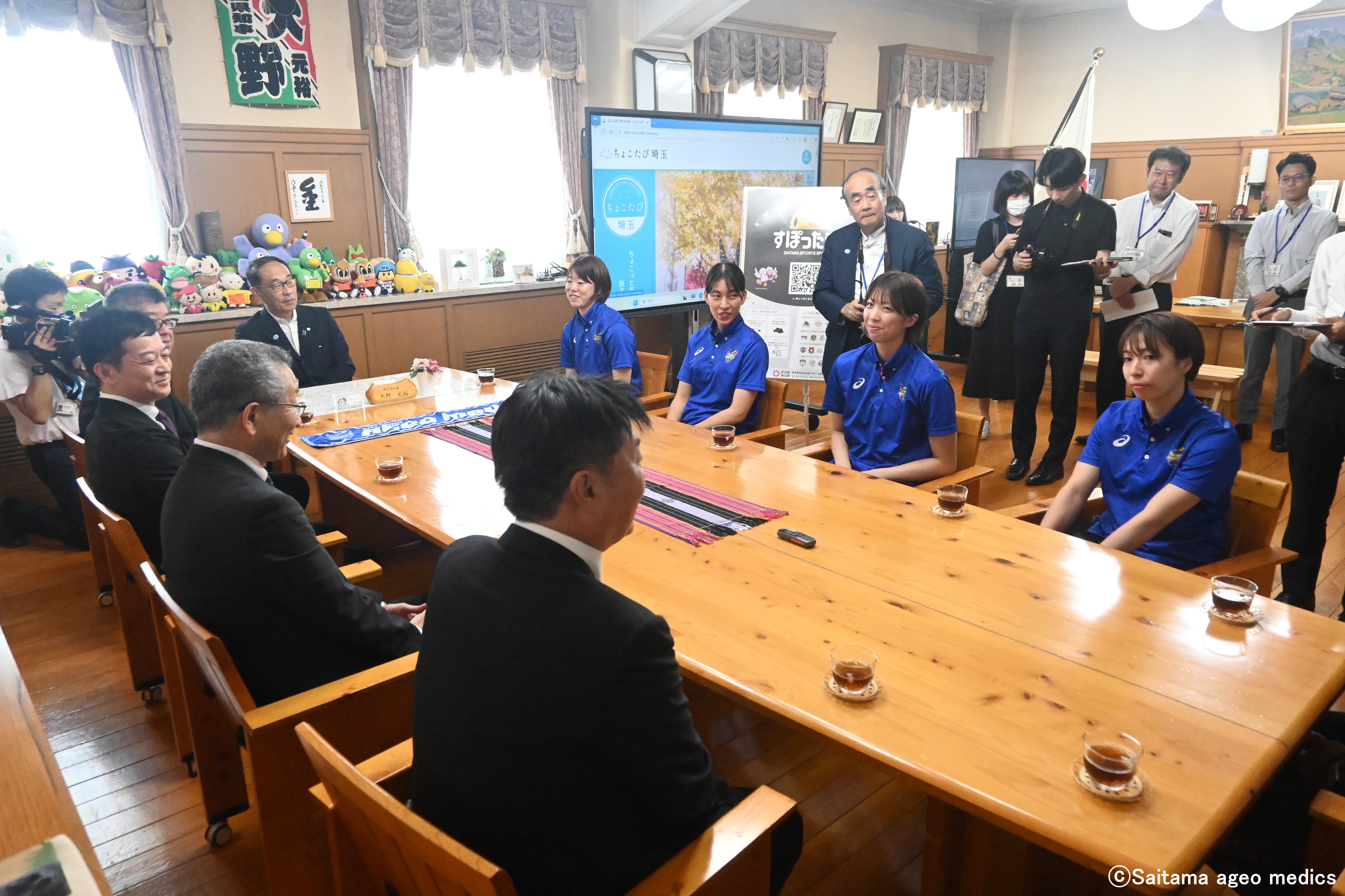 9月16日(火)、埼玉上尾メディックスから大久保茂和監督、内瀬戸真実選手、岩崎こよみ選手、鎌田咲希選手、山中宏予選手が埼玉県庁を訪問し、大野元裕知事、白土幸仁議長へ2025-26シーズン開幕にあたり決意表明をしました。