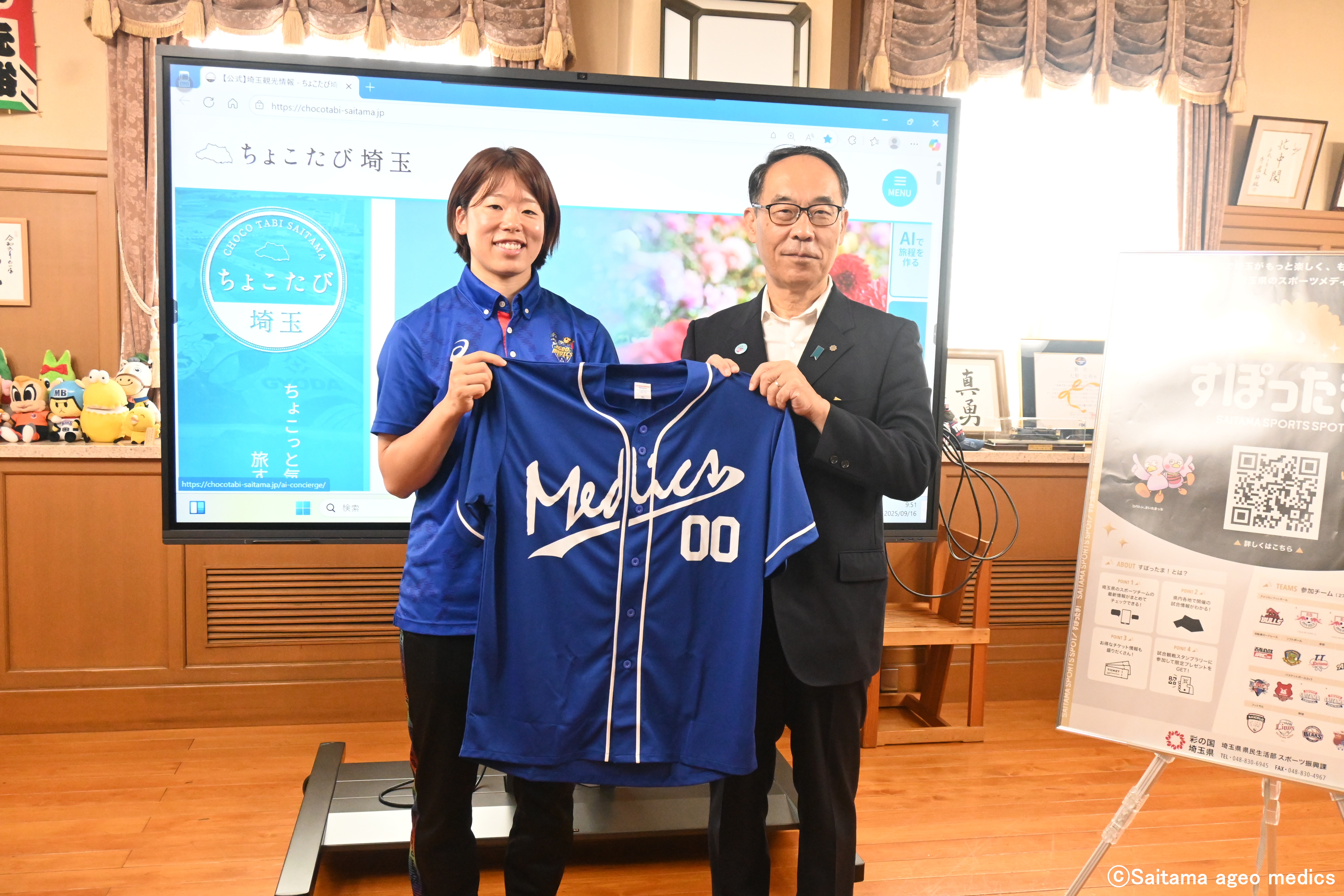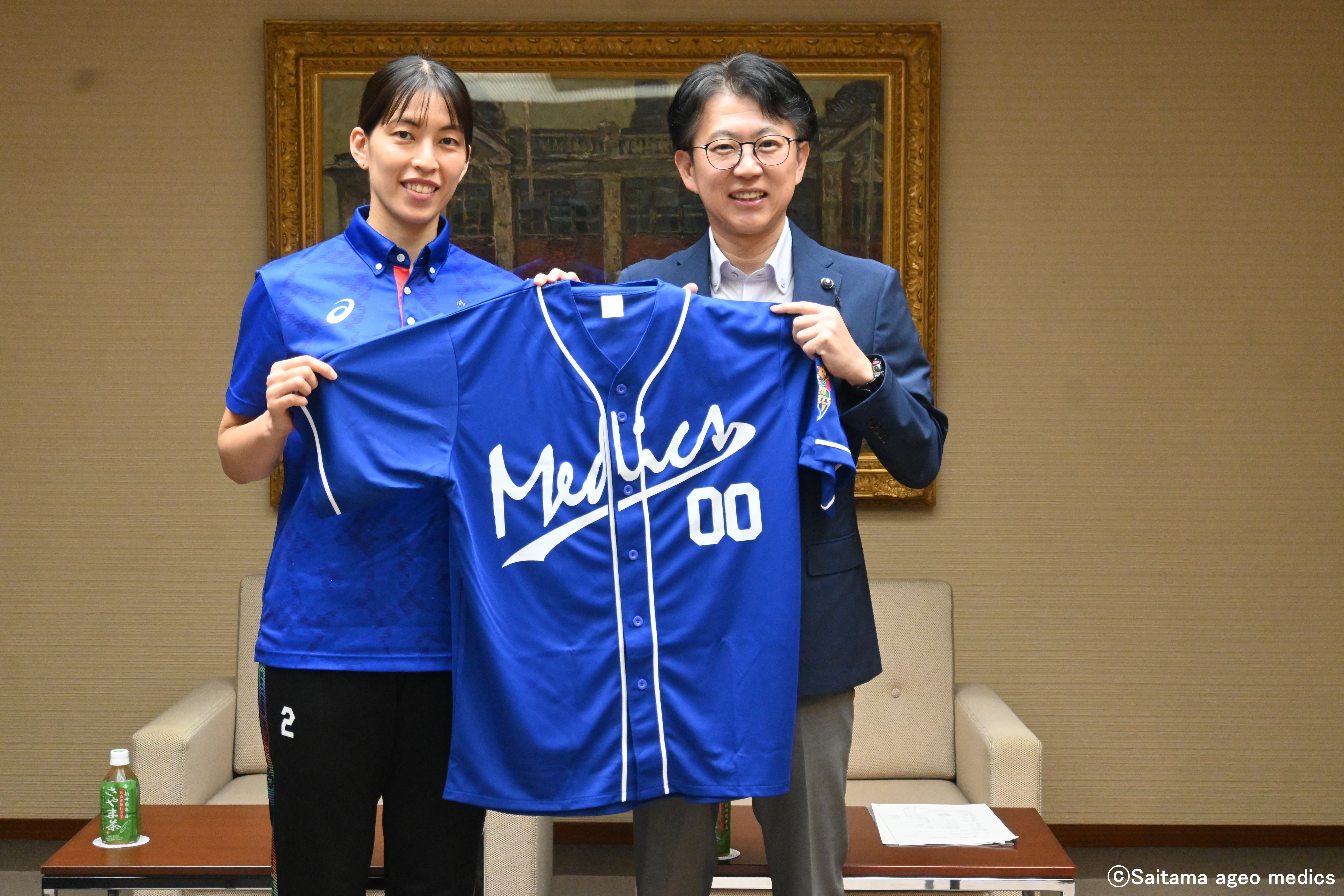 そして、大野知事と白土議長の名前入り埼玉上尾メディックスのベースボールシャツをお渡しさせていただきました。