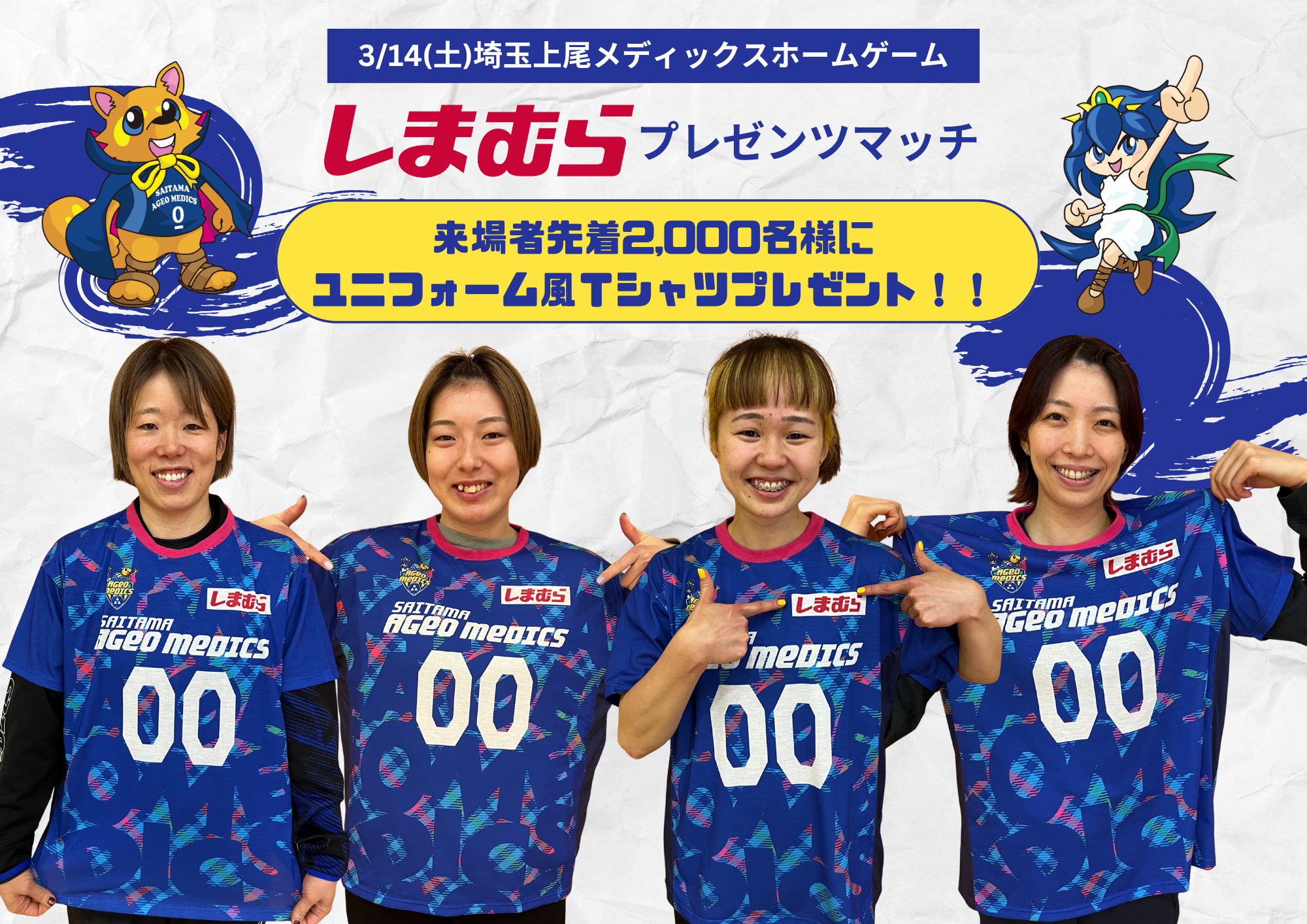 🏐3/14(土)しまむら×埼玉上尾メディックスコラボTシャツを先着2,000名にプレゼント!!