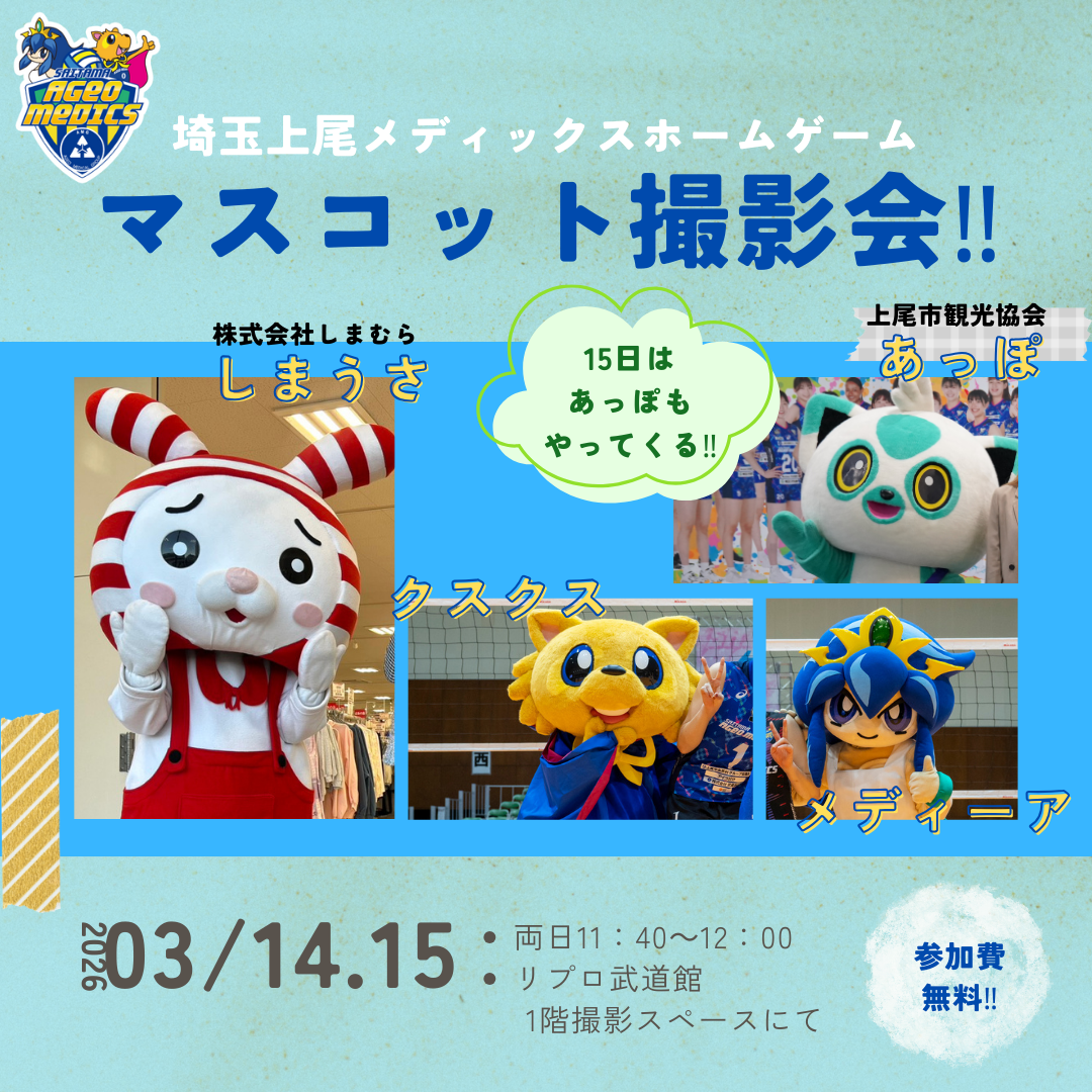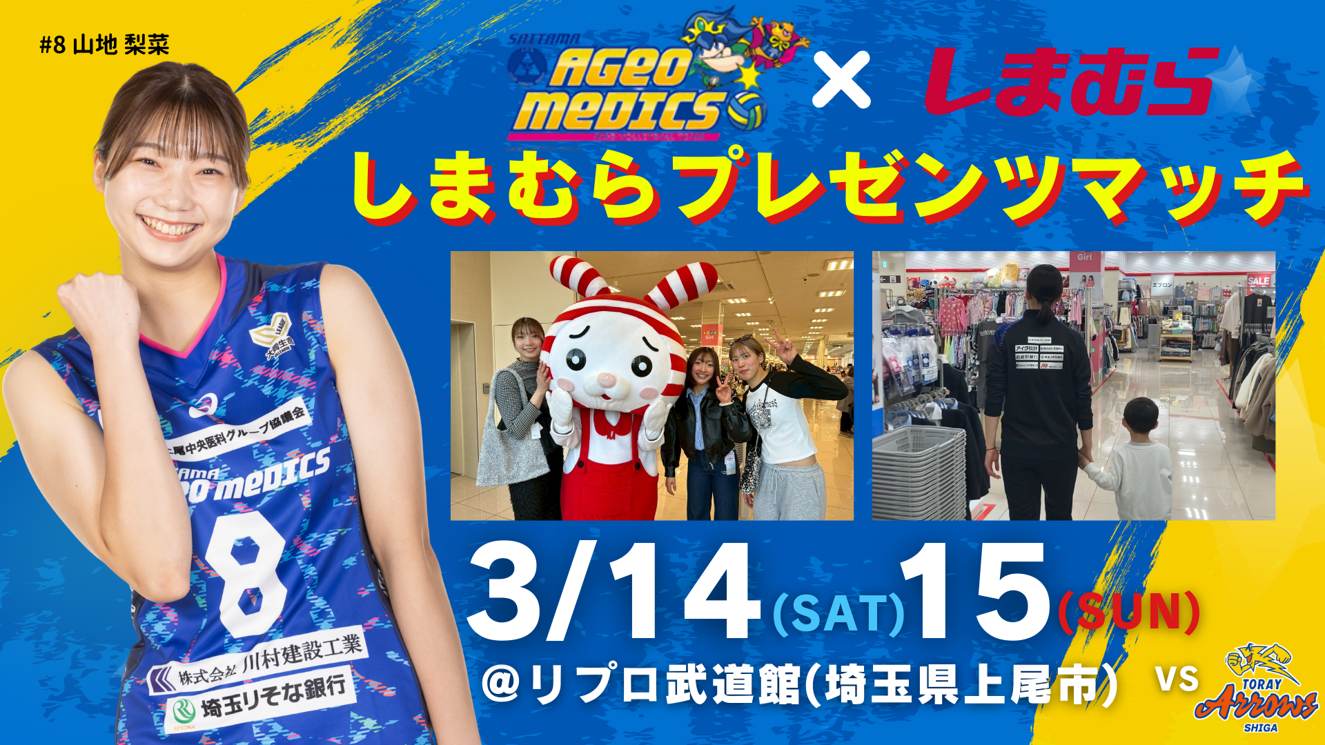 3月14日(土)、15日(日)にリプロ武道館(埼玉県上尾市)の埼玉上尾メディックスホームゲームは、株式会社しまむら様にマッチデースポンサーとして「しまむらプレゼンツマッチ」を開催いたします!!