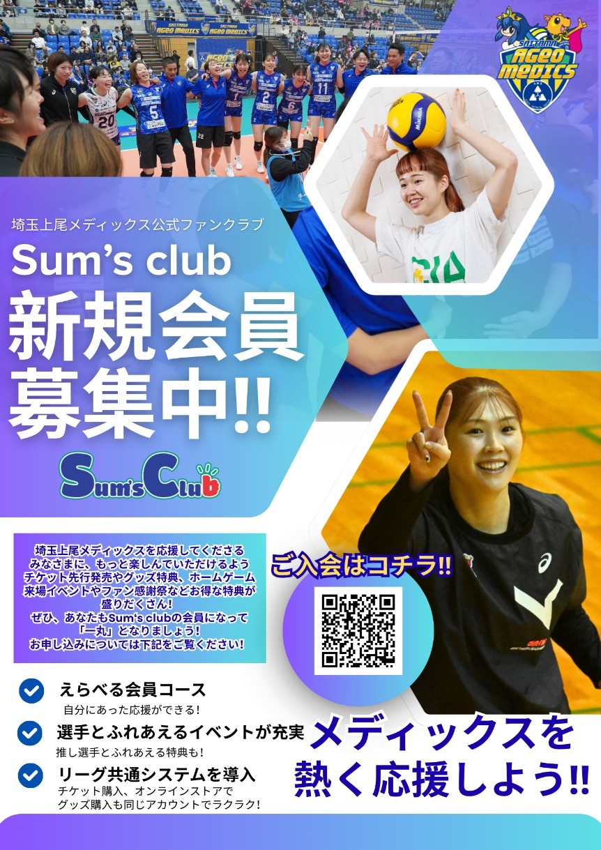Sum’s clubとは、埼玉上尾メディックス公式ファンクラブの名称で、一体感、一つになるという意味です。