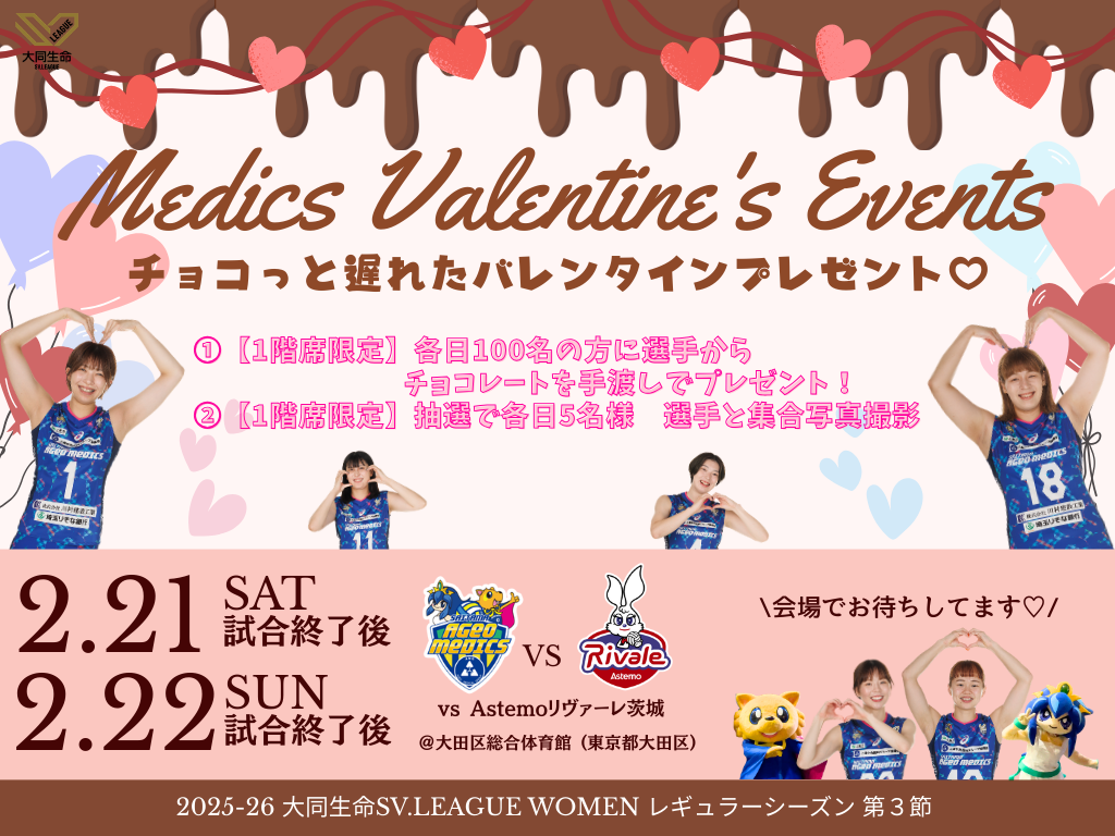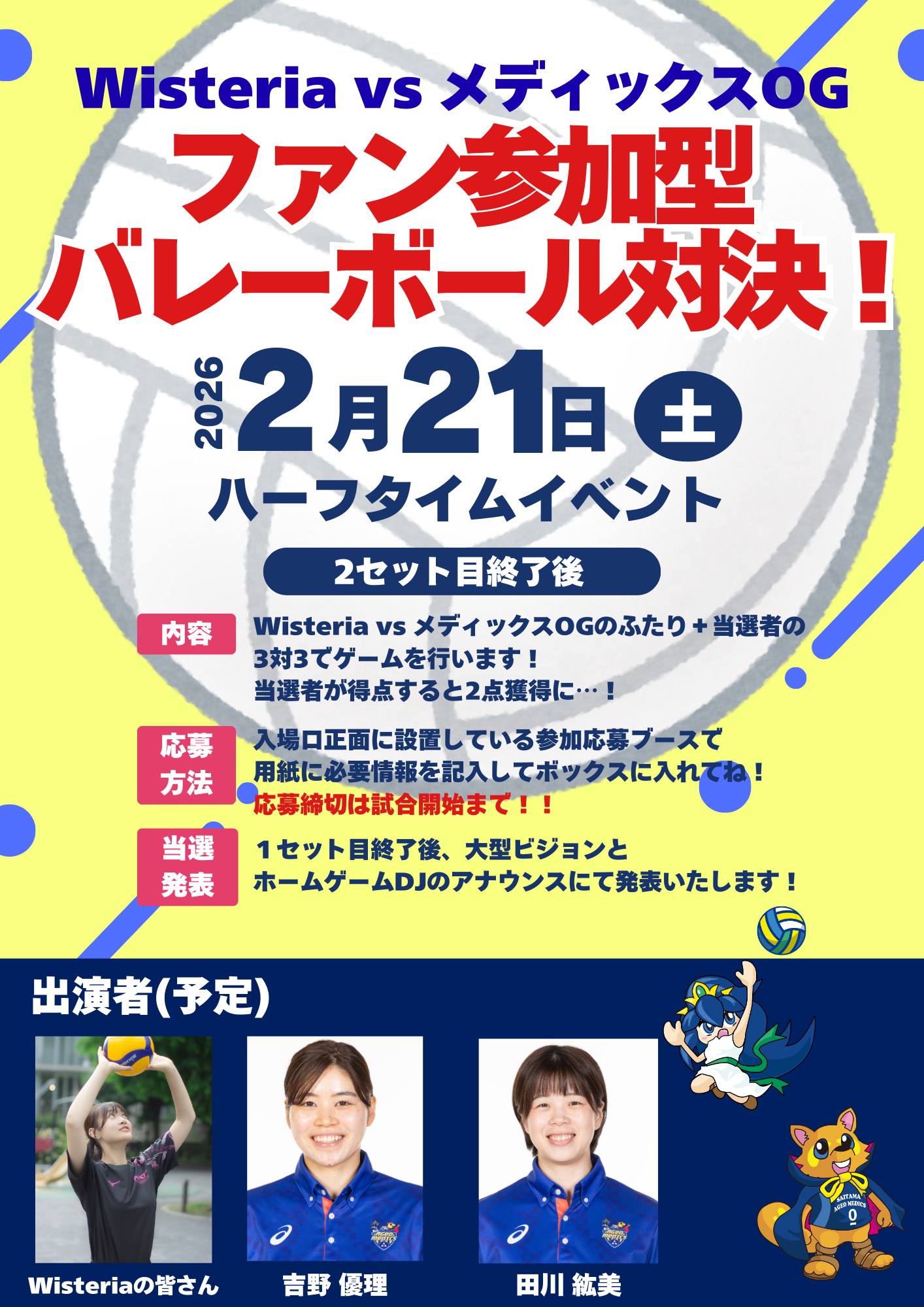 🏐2/21(土)ハーフタイムイベント「Wisteria vs メディックスOG ファン参加型バレーボール対決!」