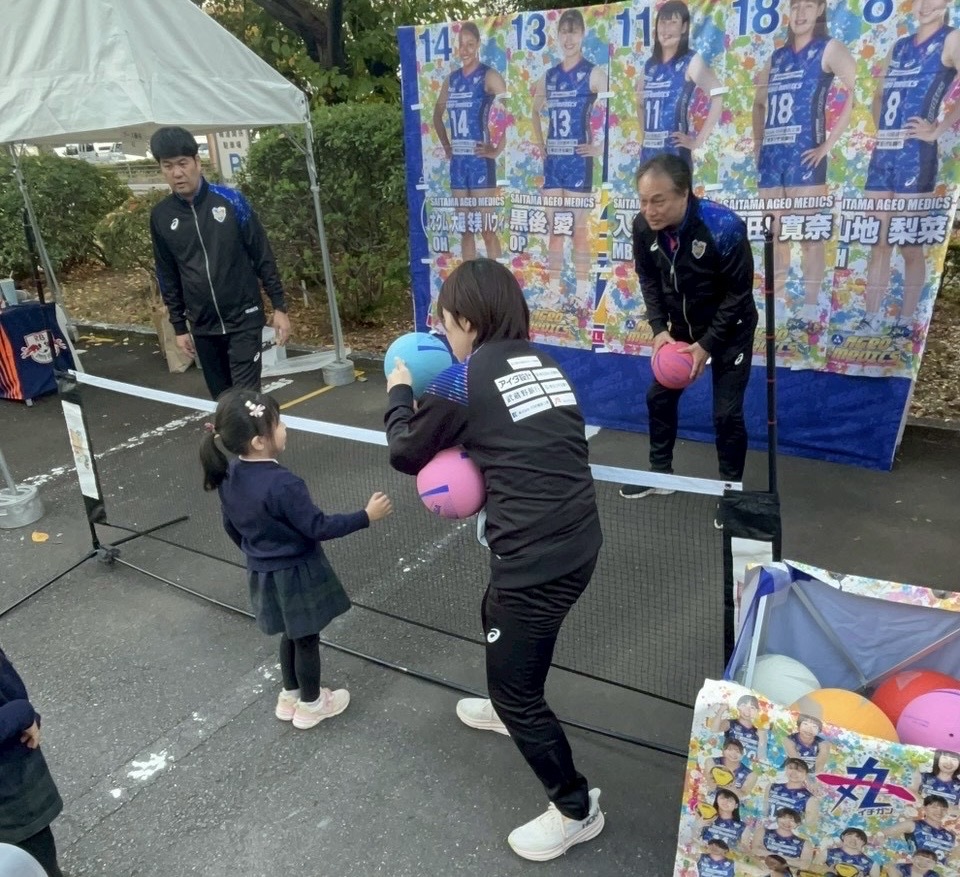 当日、埼玉上尾メディックスのブースではバレーボールスパイク体験会を中心に行い、メディックスをより多くの方に知ってもらおうと、選手の名前当てゲームなどをしました。