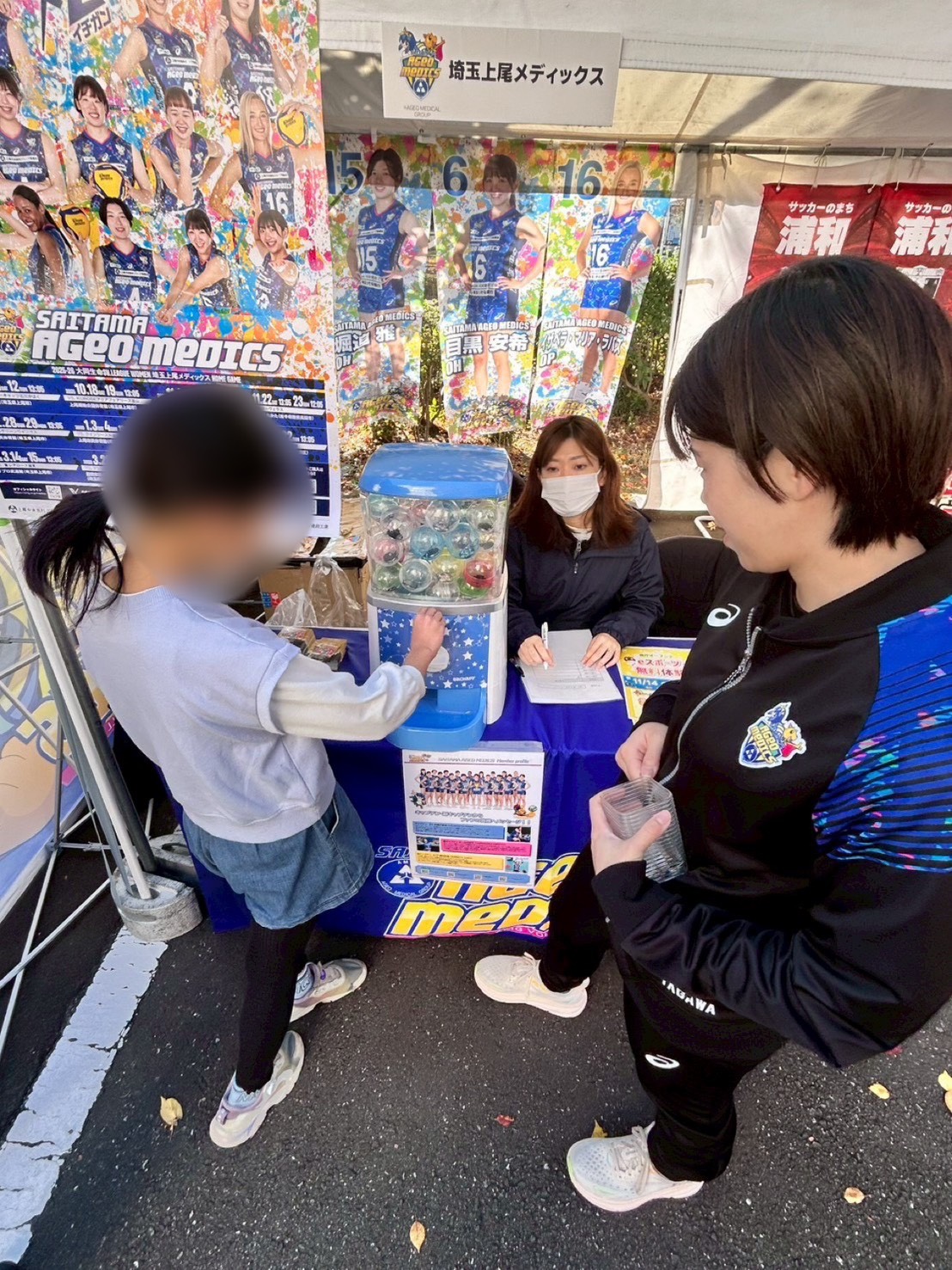 スパイク体験会に参加していただいた方は、埼玉上尾メディックス選手のキーホルダーが出るガチャガチャを回してもらいました!