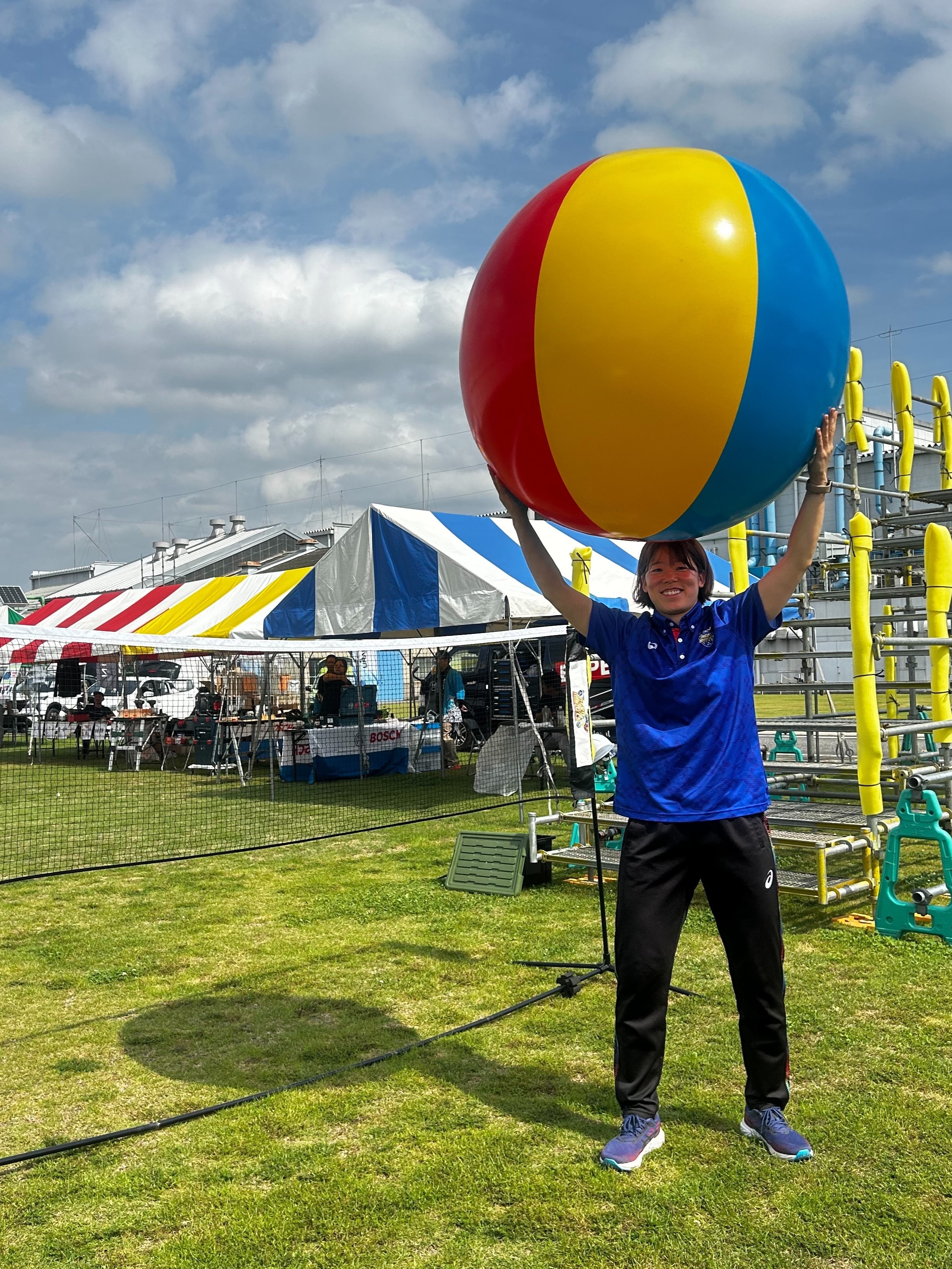 イベント中は子供から大人までたくさんの方にご参加いただき、子供対象にソフトバレーボールを使って内瀬戸選手と一緒にバレーボールを体験、また中学生以上の皆さんとは超BIGボールを使ってボールを落とさずつなぐ体験会も行いました!