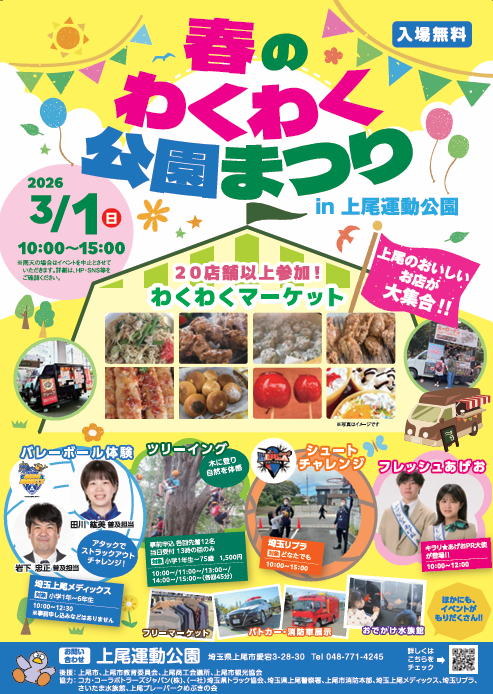 2026年3月1日(日)に埼玉県上尾市の上尾運動公園にて開催されます、春のわくわく公園まつりにて「バレーボール体験 アタックでストラックアウトチャレンジ!」を実施いたします!