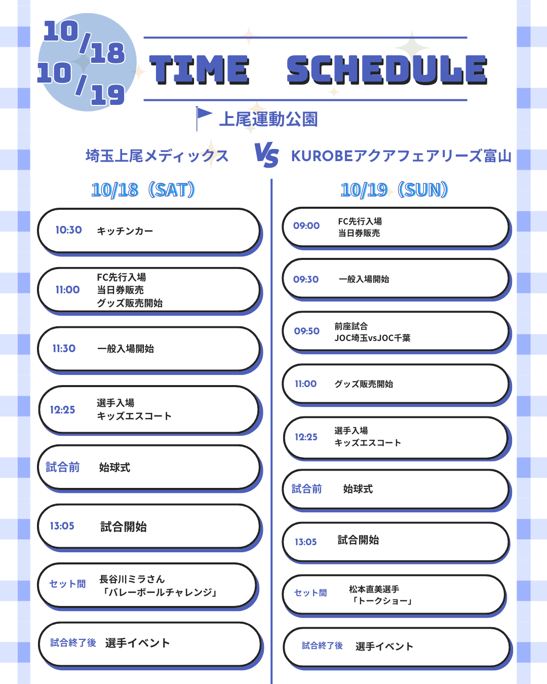 実施日時:10/18(土)10/19(日)10:30~試合終了1時間