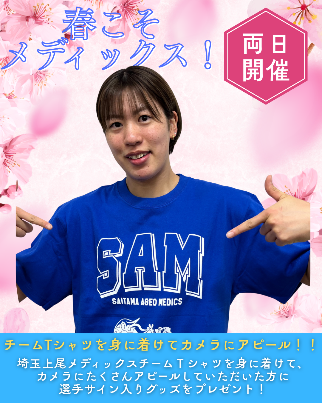 ④「春こそメディックス!」チームTシャツを身に着けてカメラにアピール!