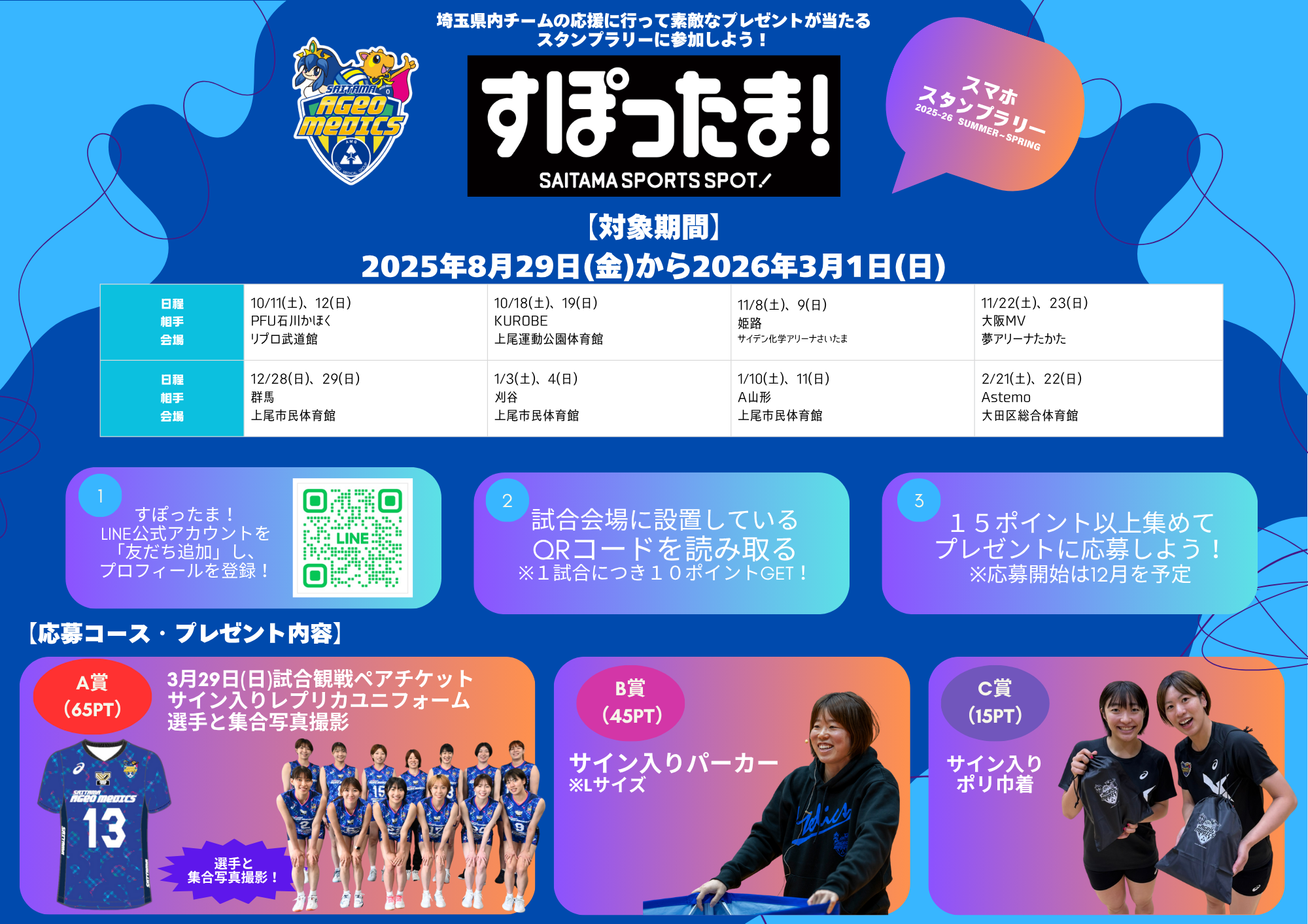埼玉県内チームの試合観戦へ行き、ポイントを貯めてプレゼントが当たるスタンプラリーを実施!