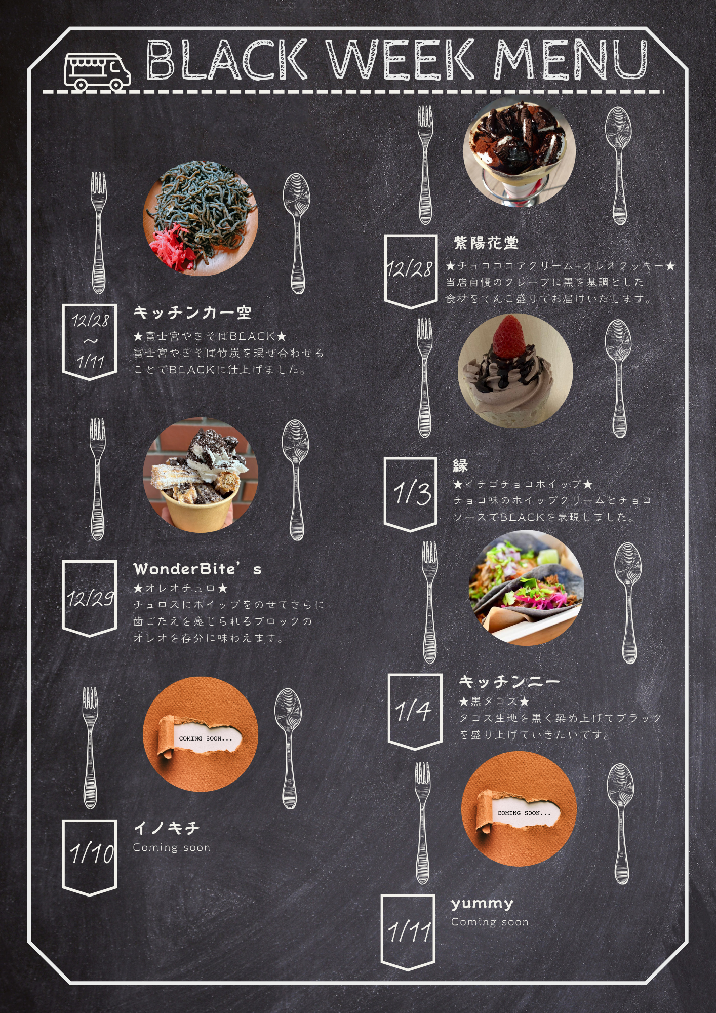 キッチンカーはBLACK WEEKにちなんだBLACKメニューが!!ぜひ食べてみてくださいね♡