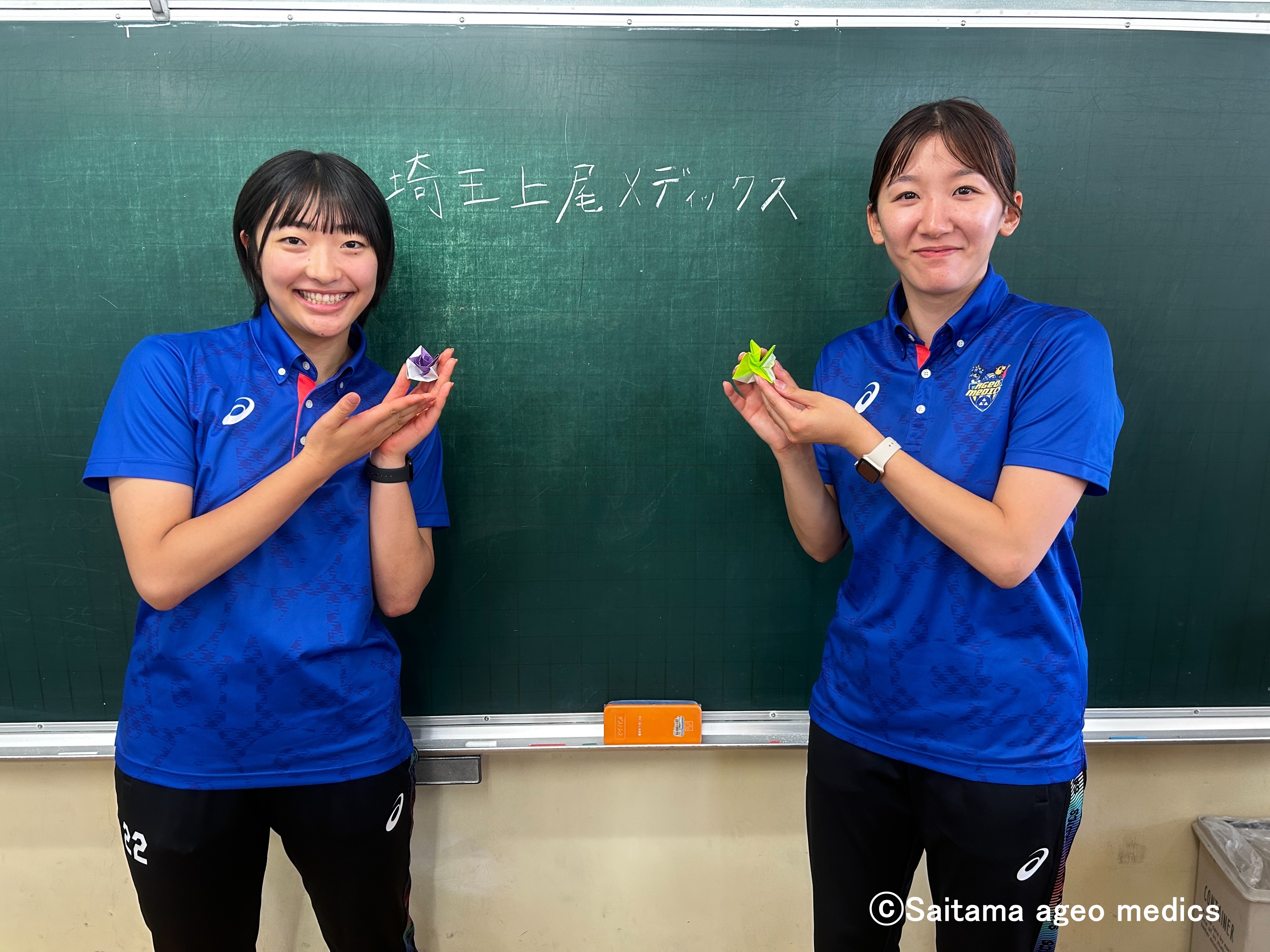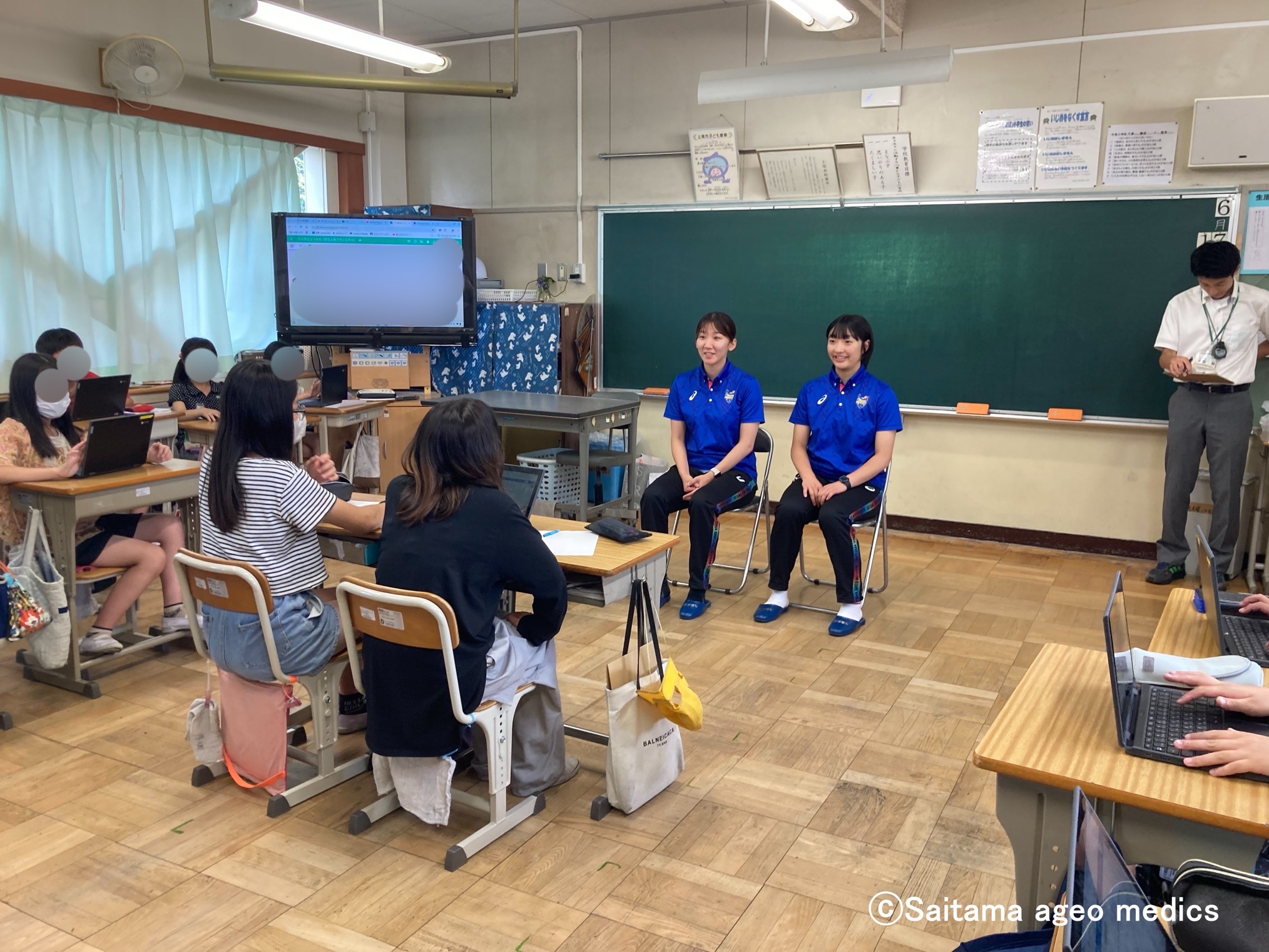 2025年6月17日(火)、上尾市立今泉小学校の6年生の国語の授業に目黒安希選手と小山明選手が参加し、児童の皆さんたちからのたくさんの質問にお答えしました!