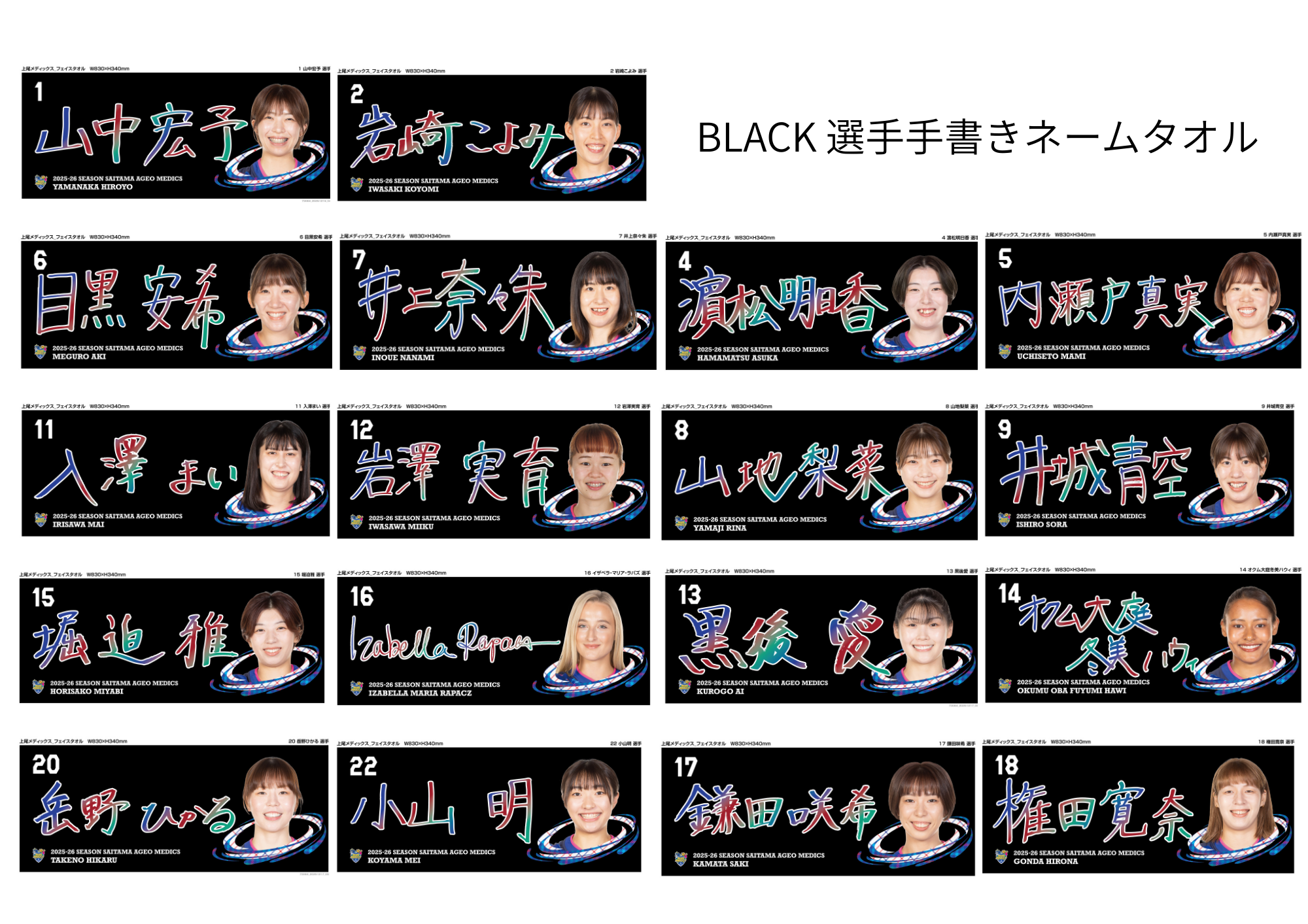 BLACK 選手手書きネームタオル ¥3,200(税込)