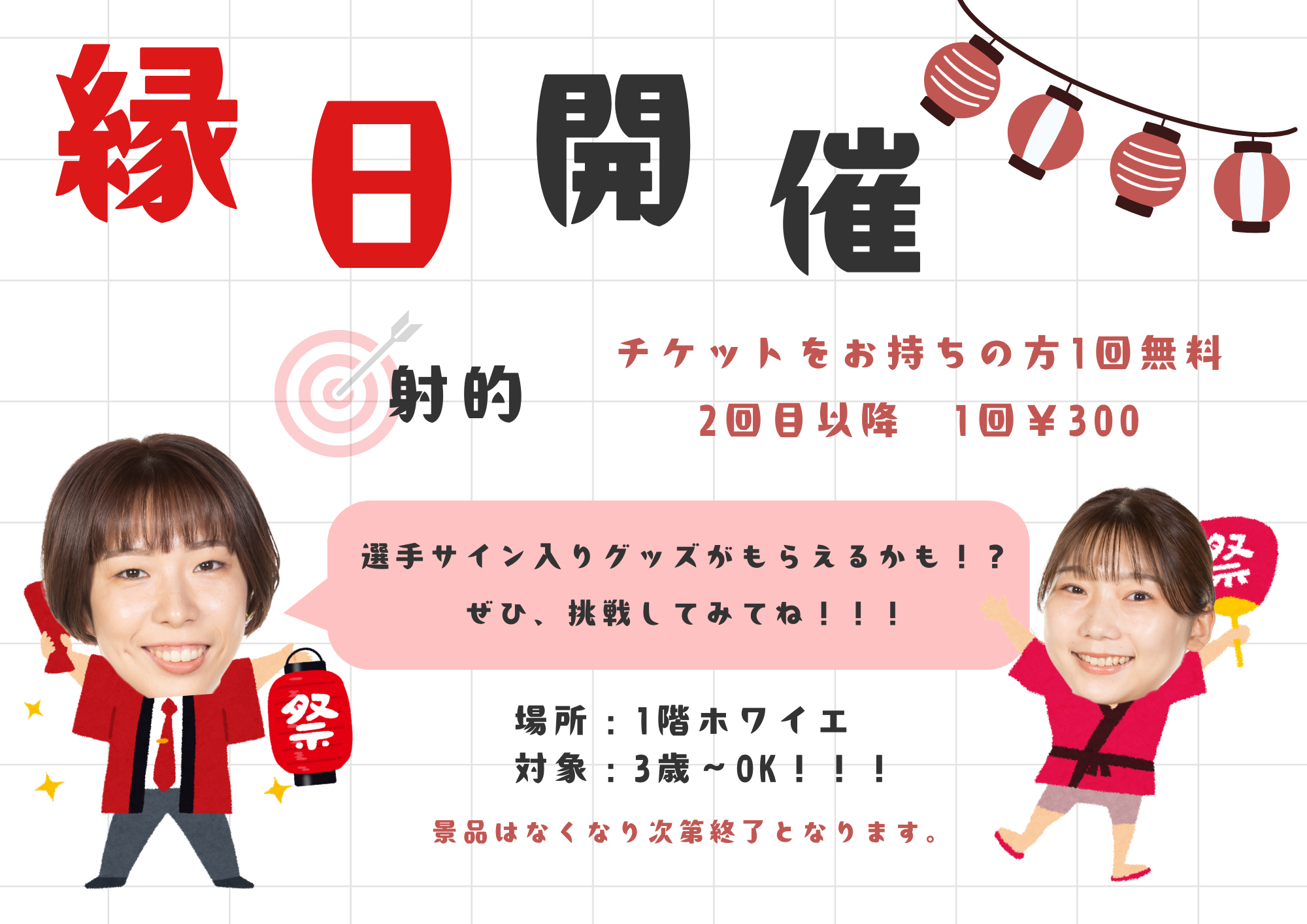 試合観戦はもちろん、ぜひ射的コーナーでも思いっきり楽しんでください☆お祭り気分で盛り上がりましょう!