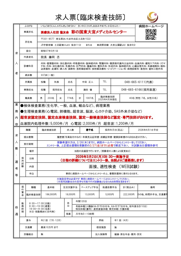 - 上尾中央総合病院(本院)の採用試験は終了いたしました。ご了承ください。