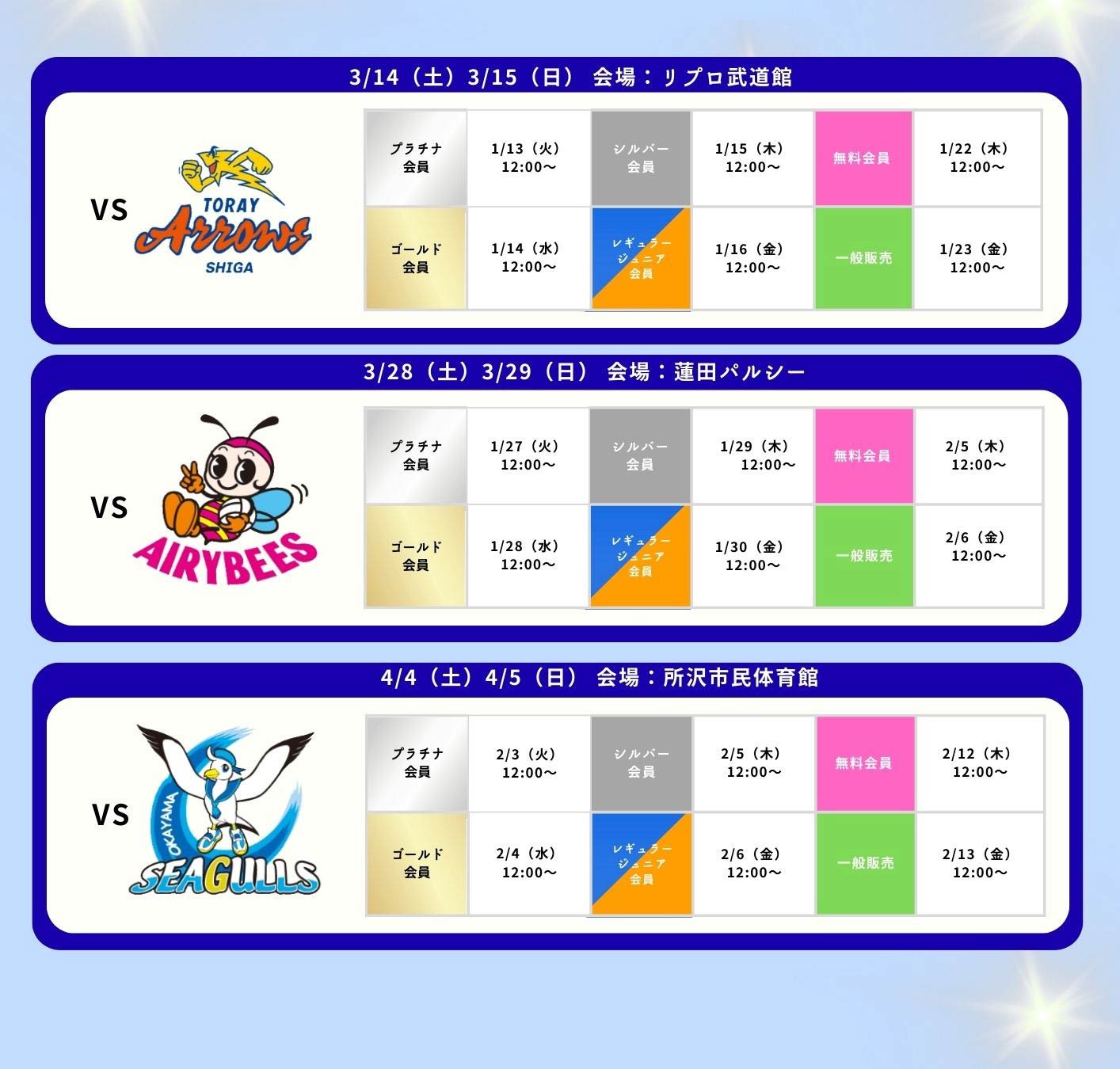 | アウェイ席(アリーナエンド) | 3,500円 | 4,000円 | |