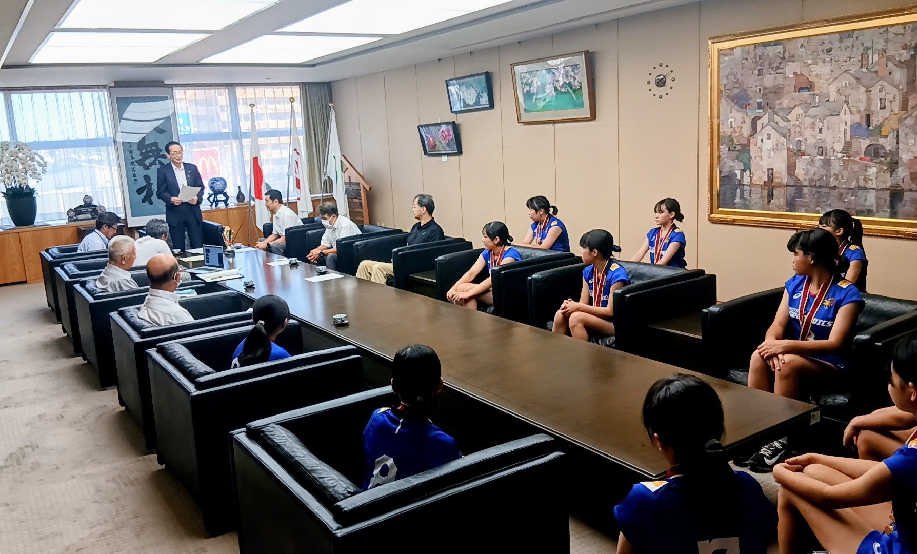 まず畠山市長からは、選手たちへ関東ブロックスポーツ少年団競技別交流大会優勝のお祝いとねぎらいのお言葉を頂きました。